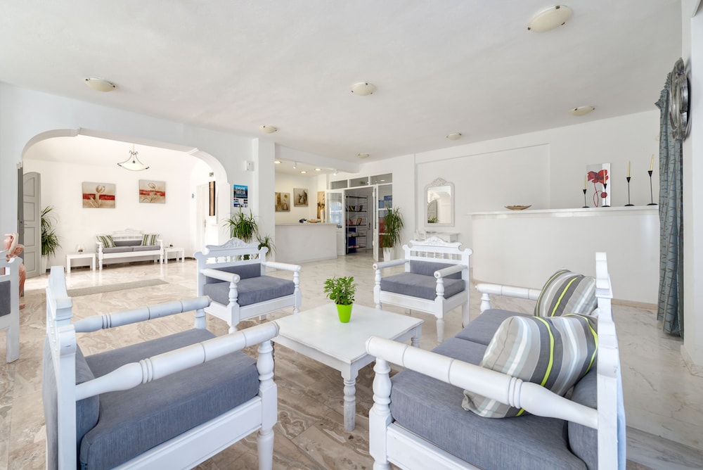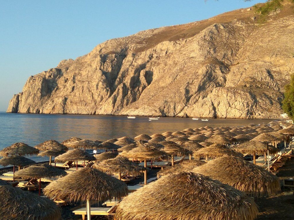 Clean hotel, nice pool, staff were lovely, plenty of sunbeds in the sun most of the day. Breakfast was simple but perfect and always being topped up. Bar was cheap. The location was perfect for somewhere slightly out of the madness but still close to the beach and only a 20 minute maximum drive to Fira and 30 minutes to Oia. Free airport transfer included.