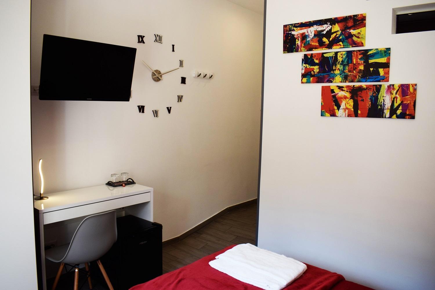 Although the b&b itself is very charming, newly refurbished and clean, the building where the structure is located does not look very well mainted and there is a fee of 10 cent for using the lift (so make sure to have coins). The b&b is located within the train station neighborhood.