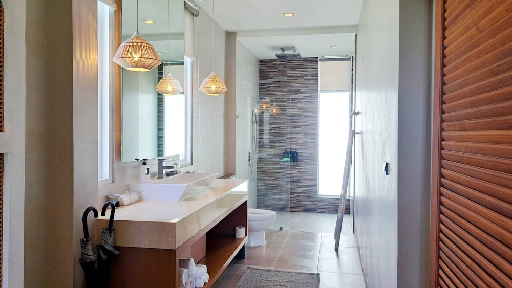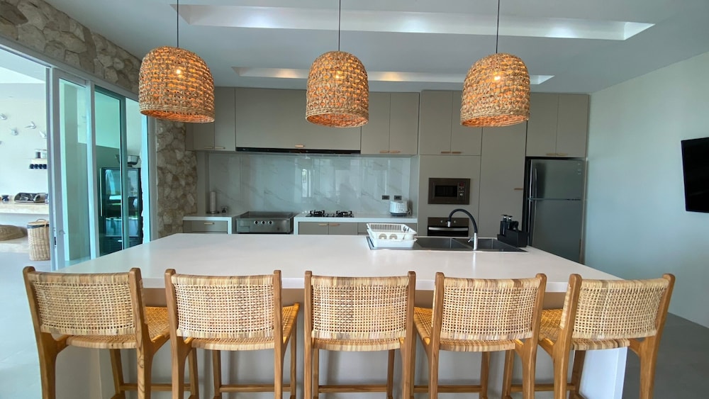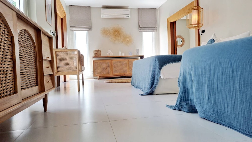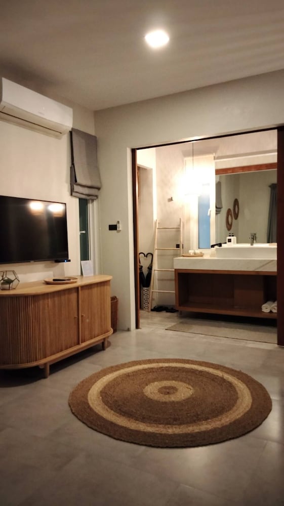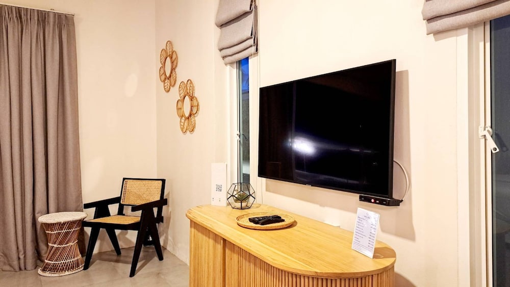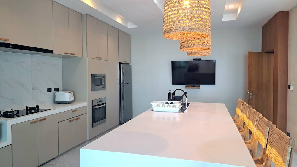 Indulge in one of the 2 air-conditioned rooms featuring private pools, LED televisions, and well-equipped kitchens. Enjoy your private balcony or patio for a serene retreat.