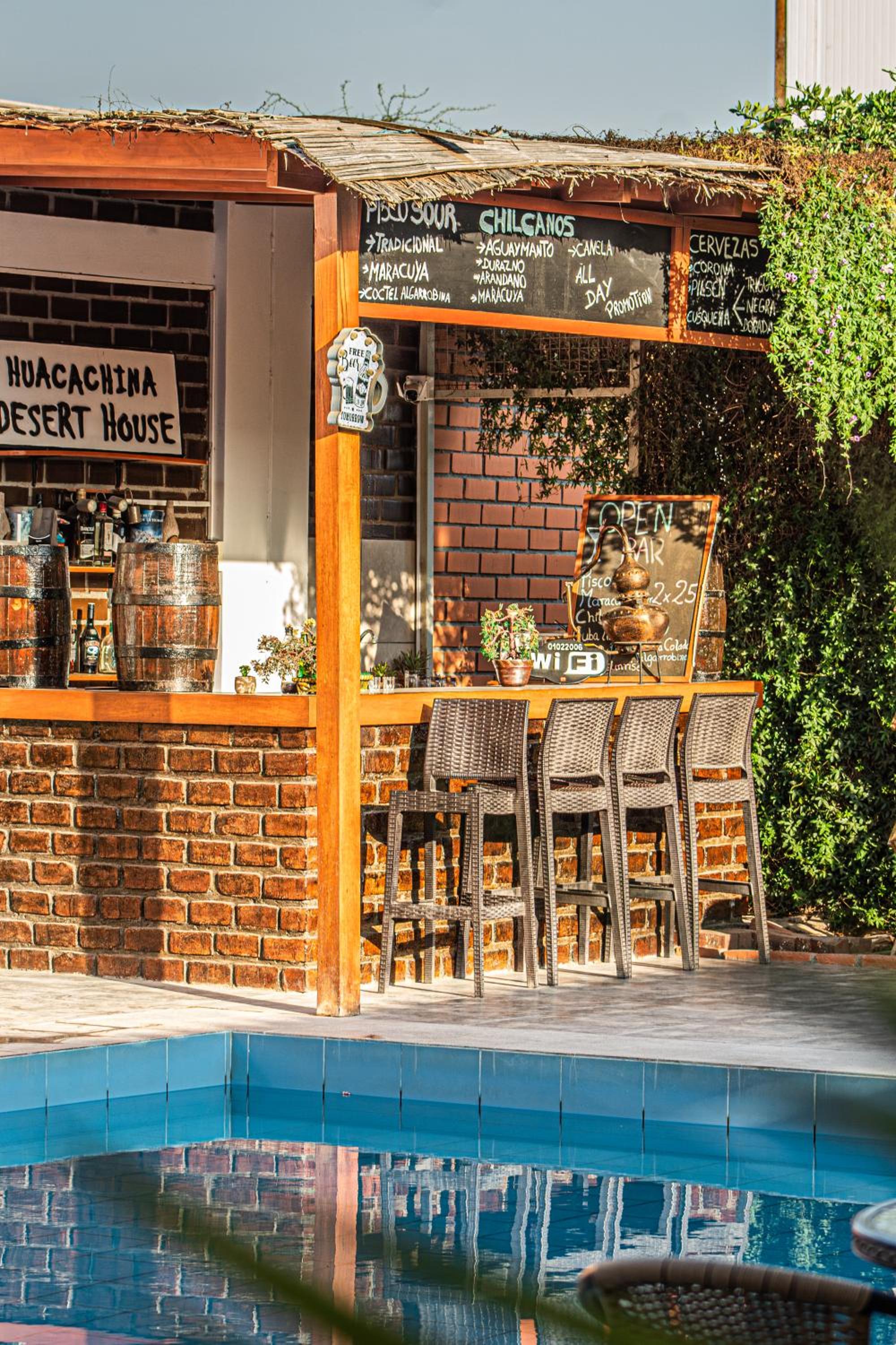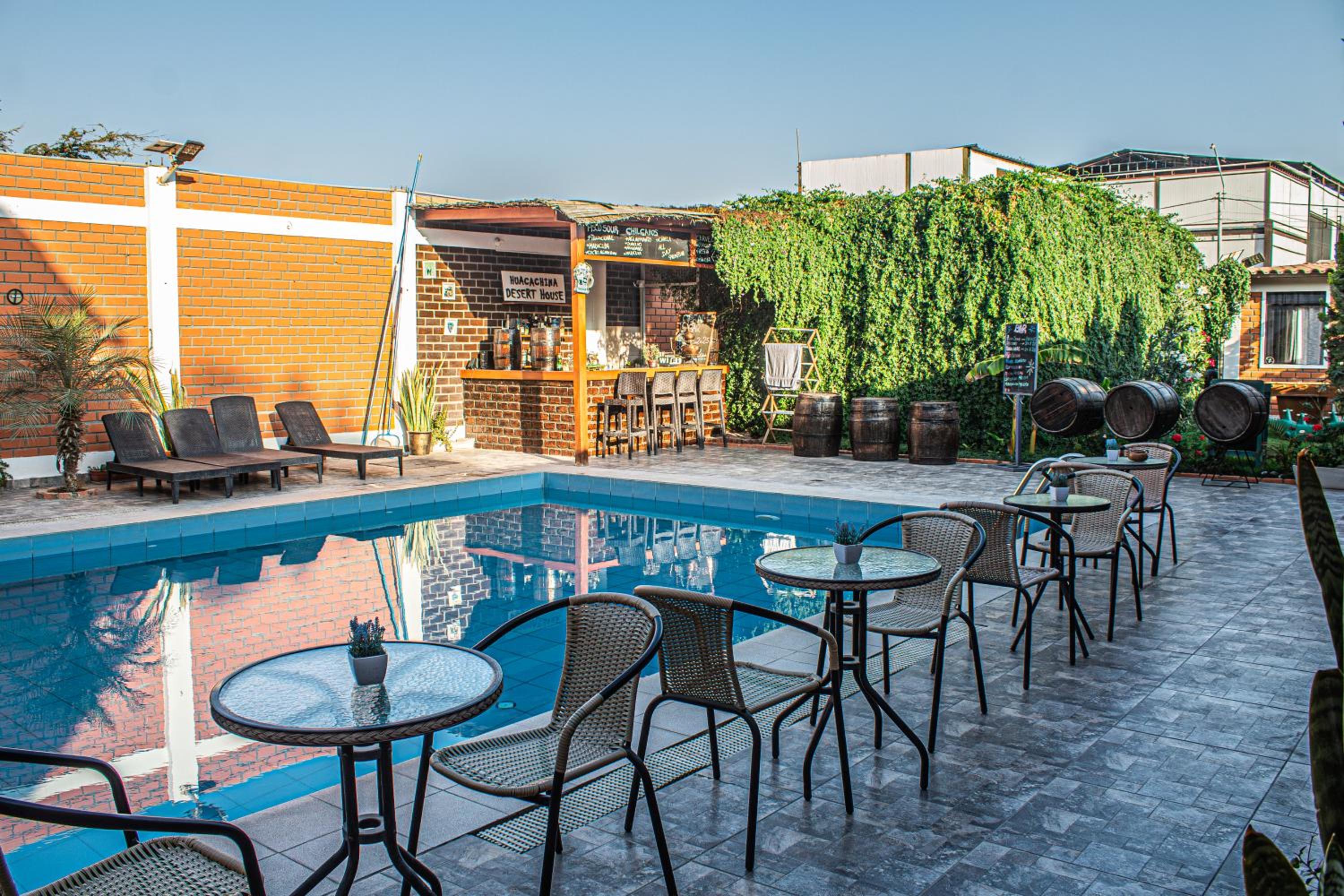 Huacachina Desert House offers an array of luxurious amenities including an outdoor swimming pool, fitness centre, and a beautiful garden. Guests can also unwind at the bar or soak up the sun on the terrace.