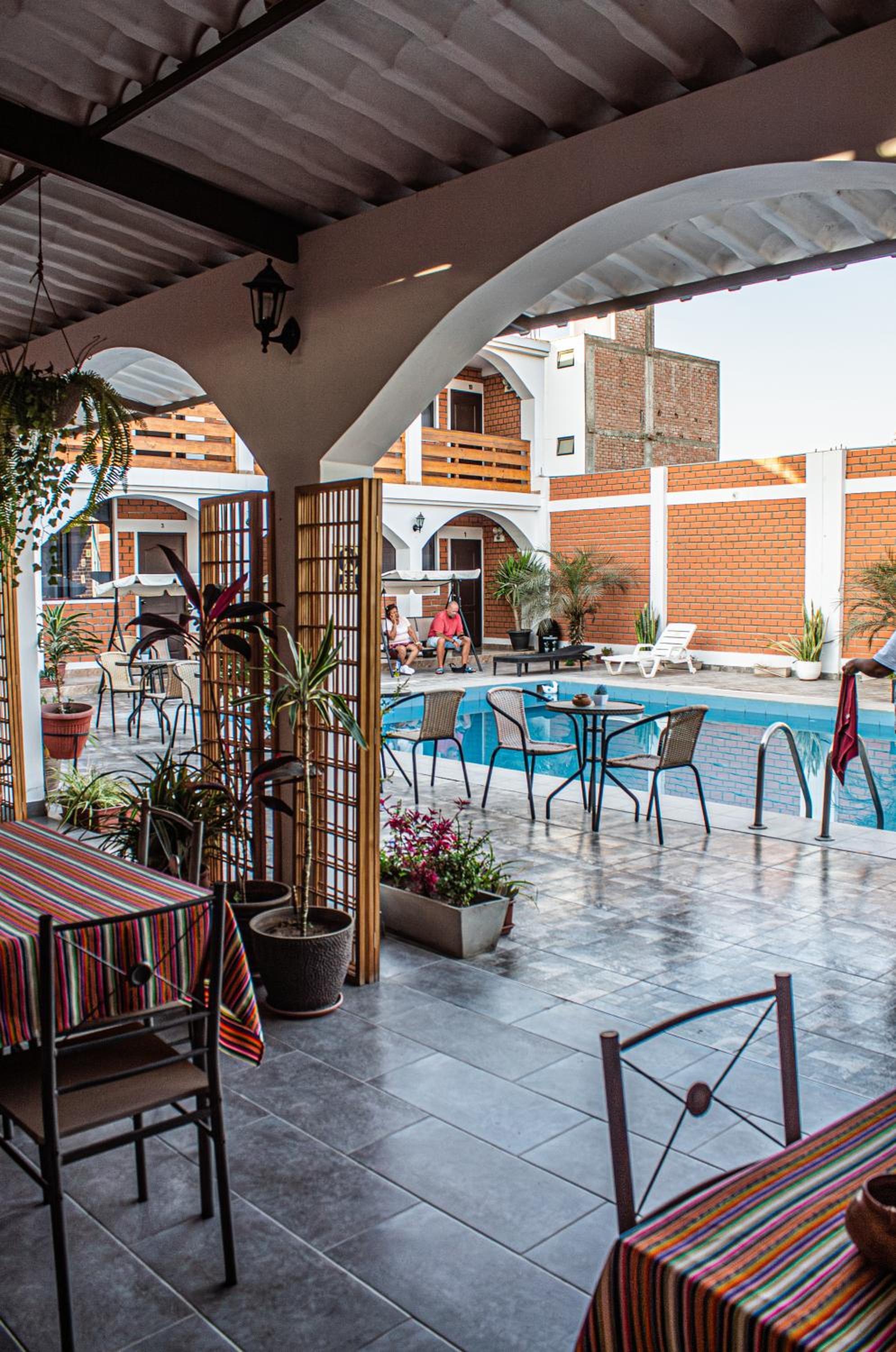 Habitaciones cómodas, baño limpio y buena presión del agua. La piscina y zona de descanso buenas. Accesible si quieres estar cerca a la Huacachina y llegar al centro de Ica también. Muy buena la estancia en relación al precio. Personal amable
