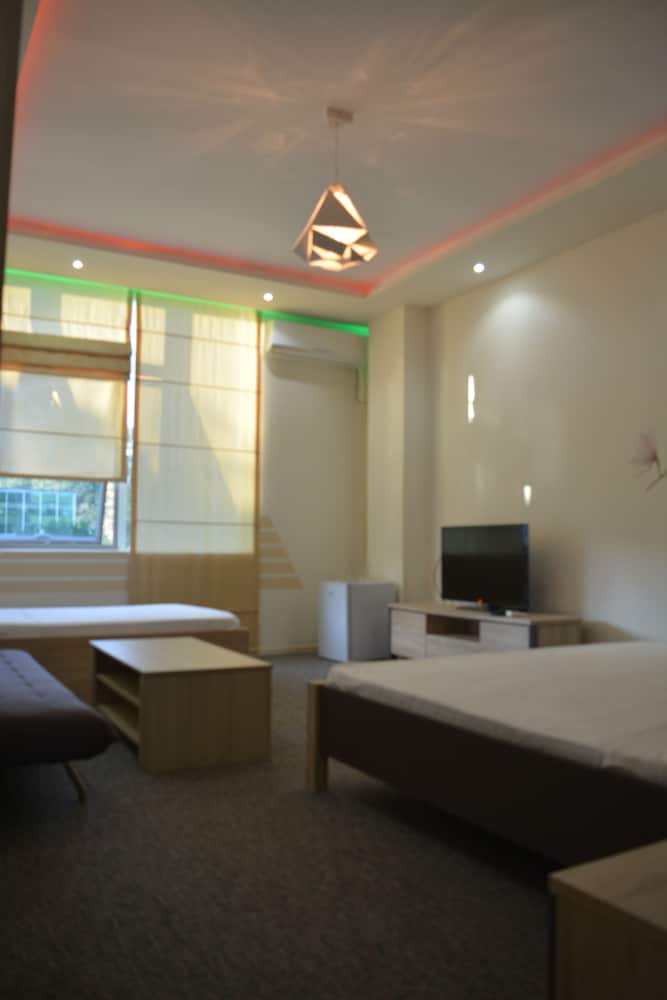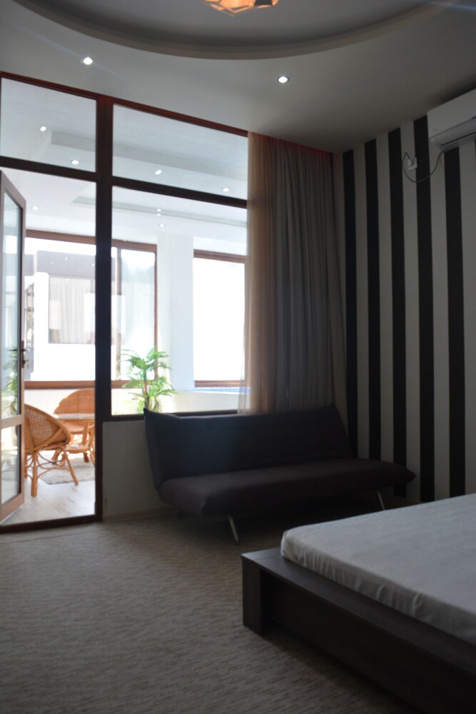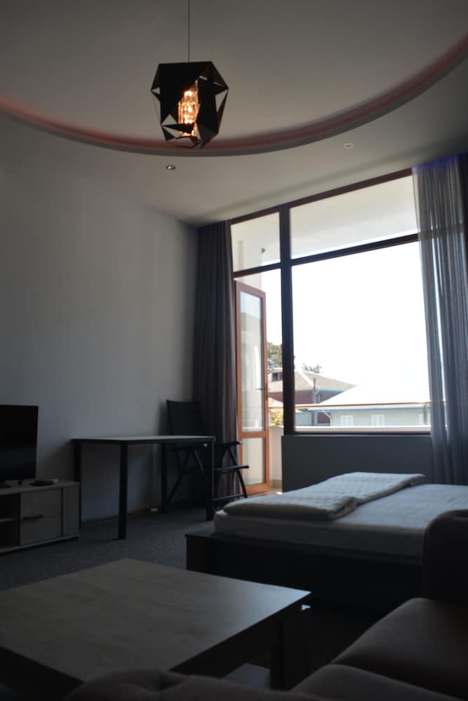 Service is very good, aiming to fulfill each and every will of the guest, georgian hospitality. The room was brand new, clean and very nicely decorated. Location convenient, sea view. Silent and spacious. we received an upgraded room. In 5 min walk by the sea shore, there were plenty of restorants, bars, etc. Going by the street there were lots of small shops. I will certainly return t this place.