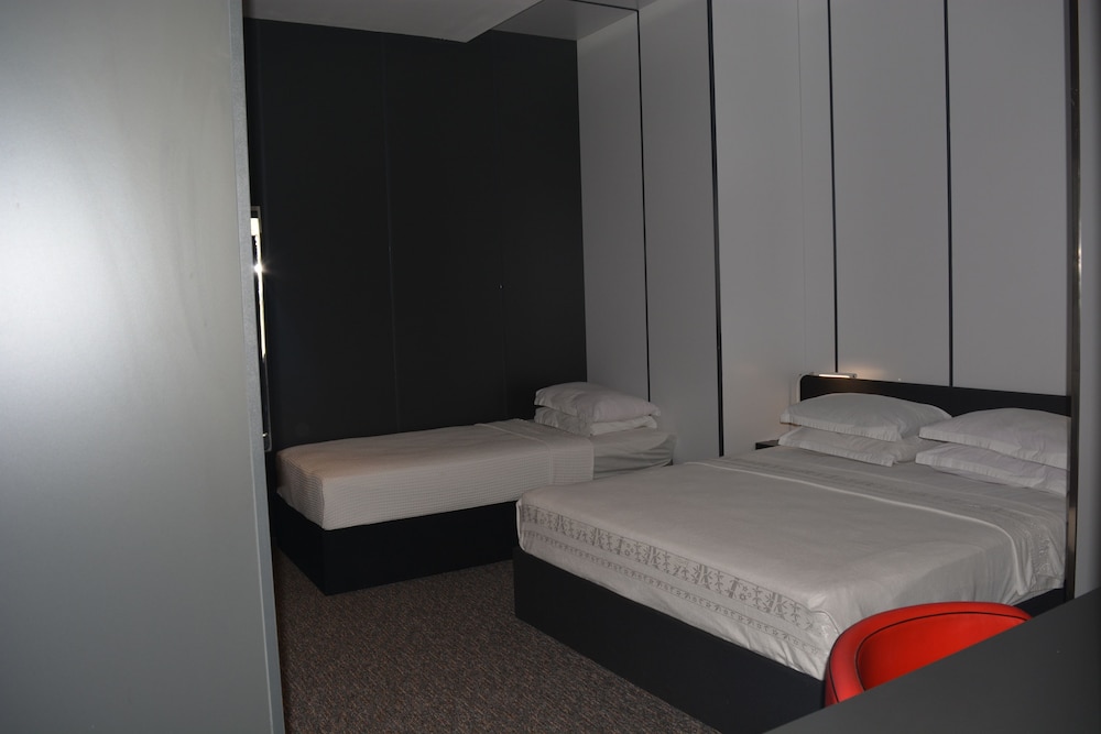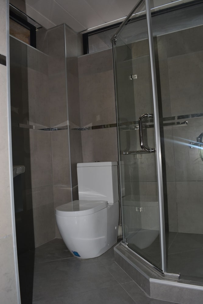 To get from the hotel to the beach takes about 2 minutes walk because the building is in the second row of buildings when viewed from the beach. The hotel has 3 floors, its quite new and modern. Rooms are spacious, very clean, have a balcony, fridge, TV, AC, shower and safe. Amenities include shower gel and shampoo. It seemed the rooms were furnished predominantly with Chinese products and materials. There is also a small pool and a kids corner on the groundfloor.