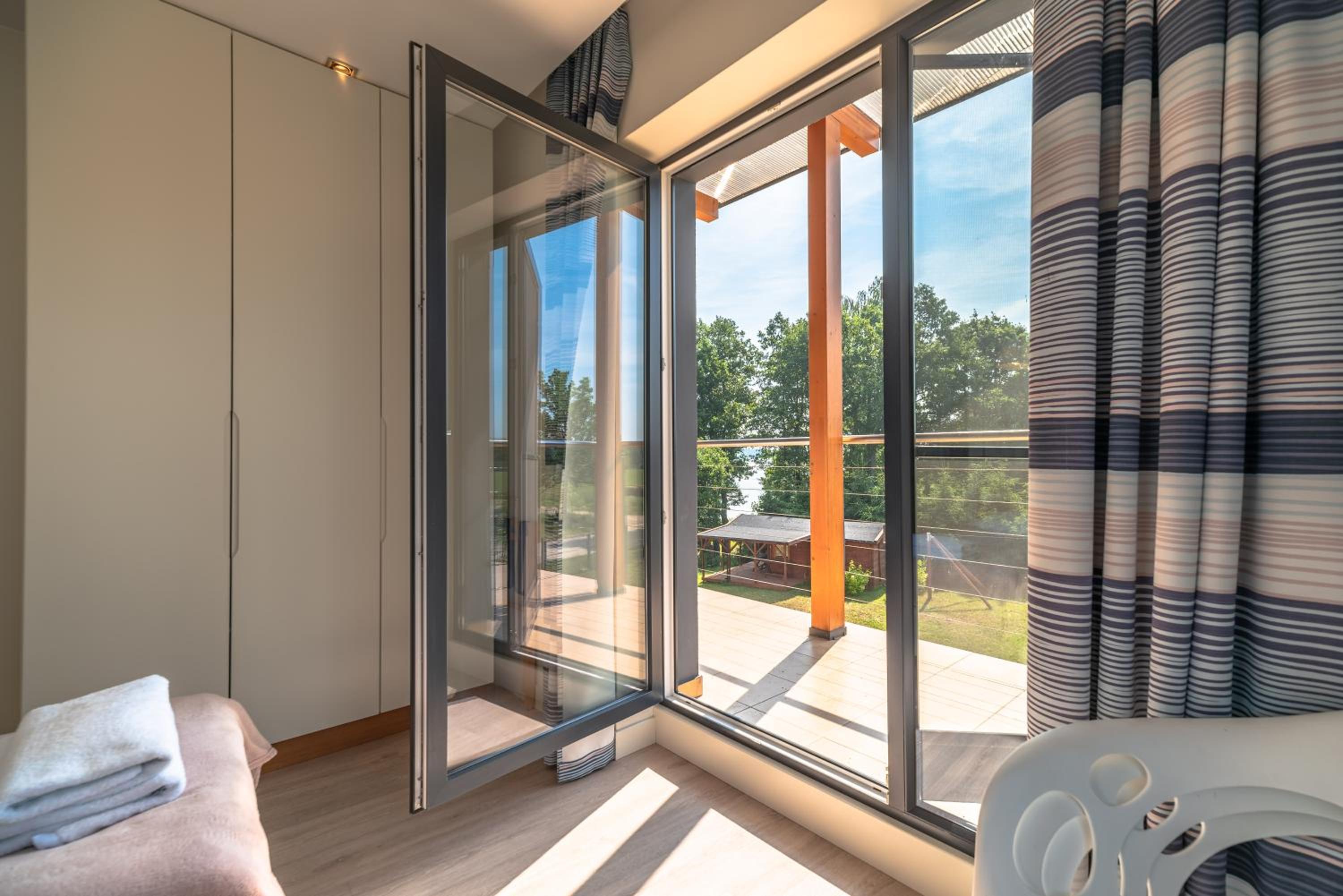 Doskonała lokalizacja, choć dojazd trochę wymagający. Piękne widoki na jezioro. Nabrzeże przygotowane dla żeglarzy, dla skuterów etc. Deck z leżakami do kontemplowania okoliczności przyrody. Bardzo wygodne apartamenty, świetnie wyposażenie we wszystko co niezbędne. Wokół las, szlaki piesze. Dla każdego jakaś aktywność się znajdzie.