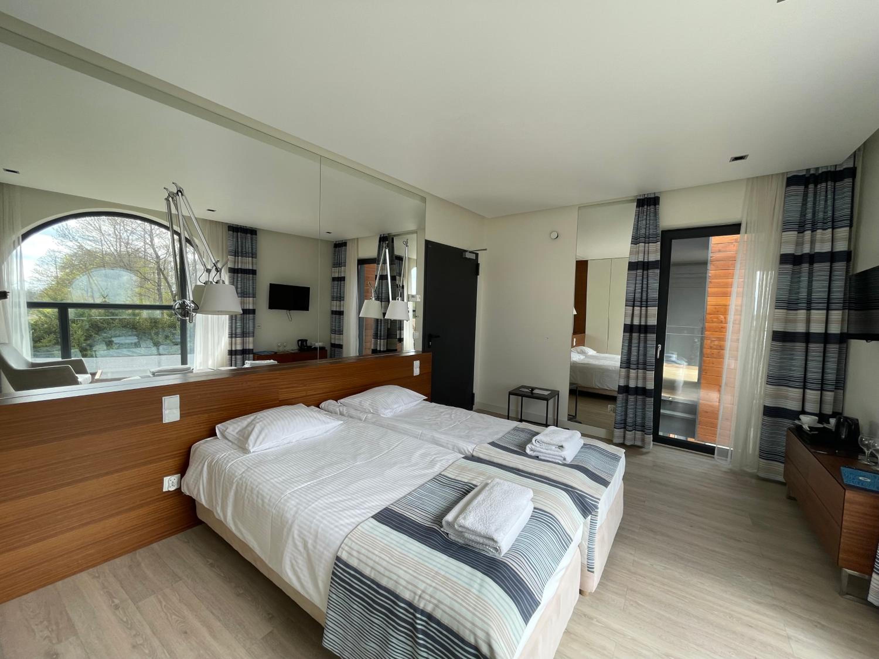 Piekny hotelik położony przy jeziorze Talty. Cisza i spokój. Super smaczne jedzenie w restauracji.