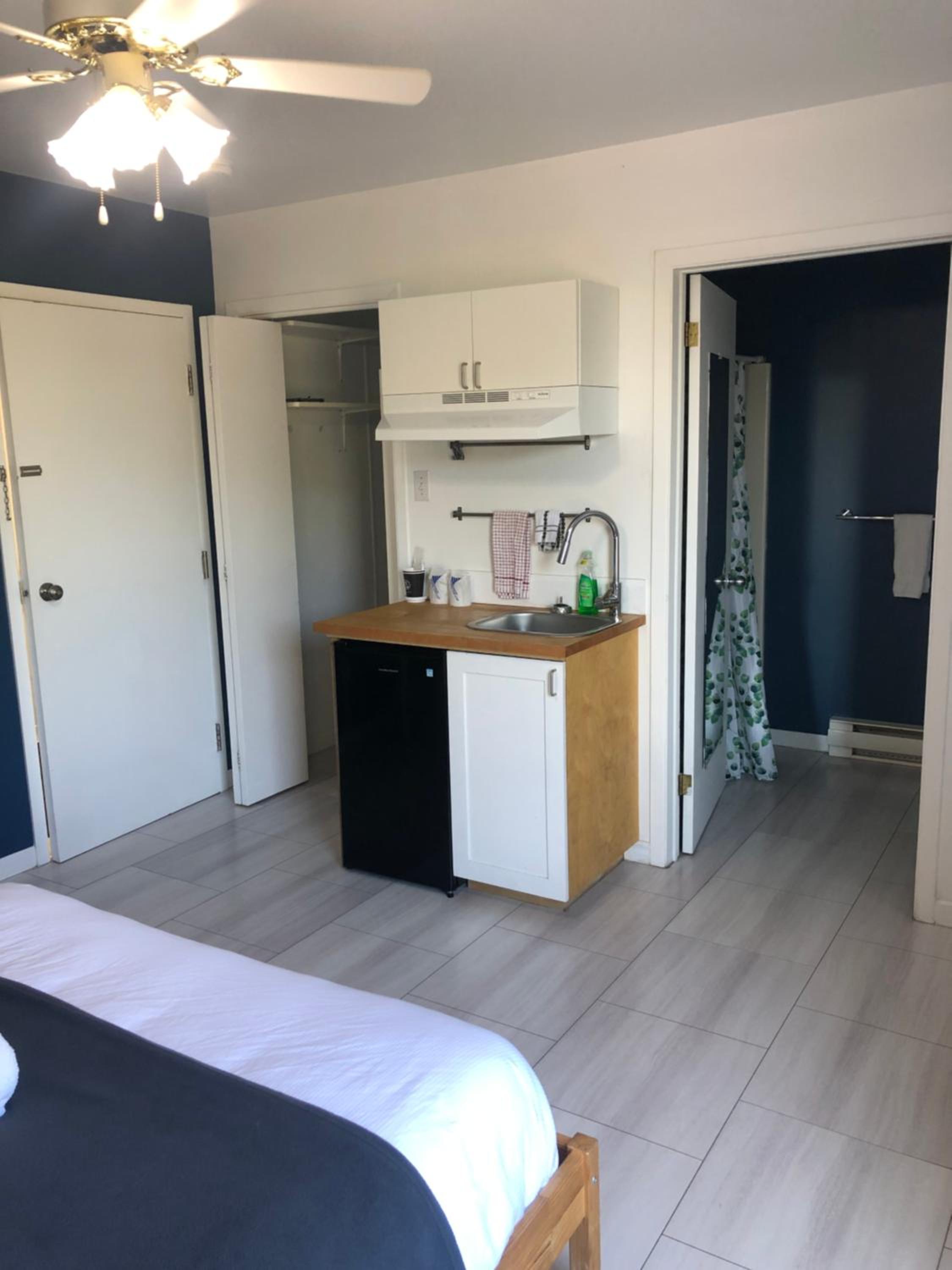 Il n’y a pas de vraie kitchenette dans la chambre. Ce n’est qu’un évier avec frigo. Même pas de cafetière alors que c’était noté dans le descriptif.
