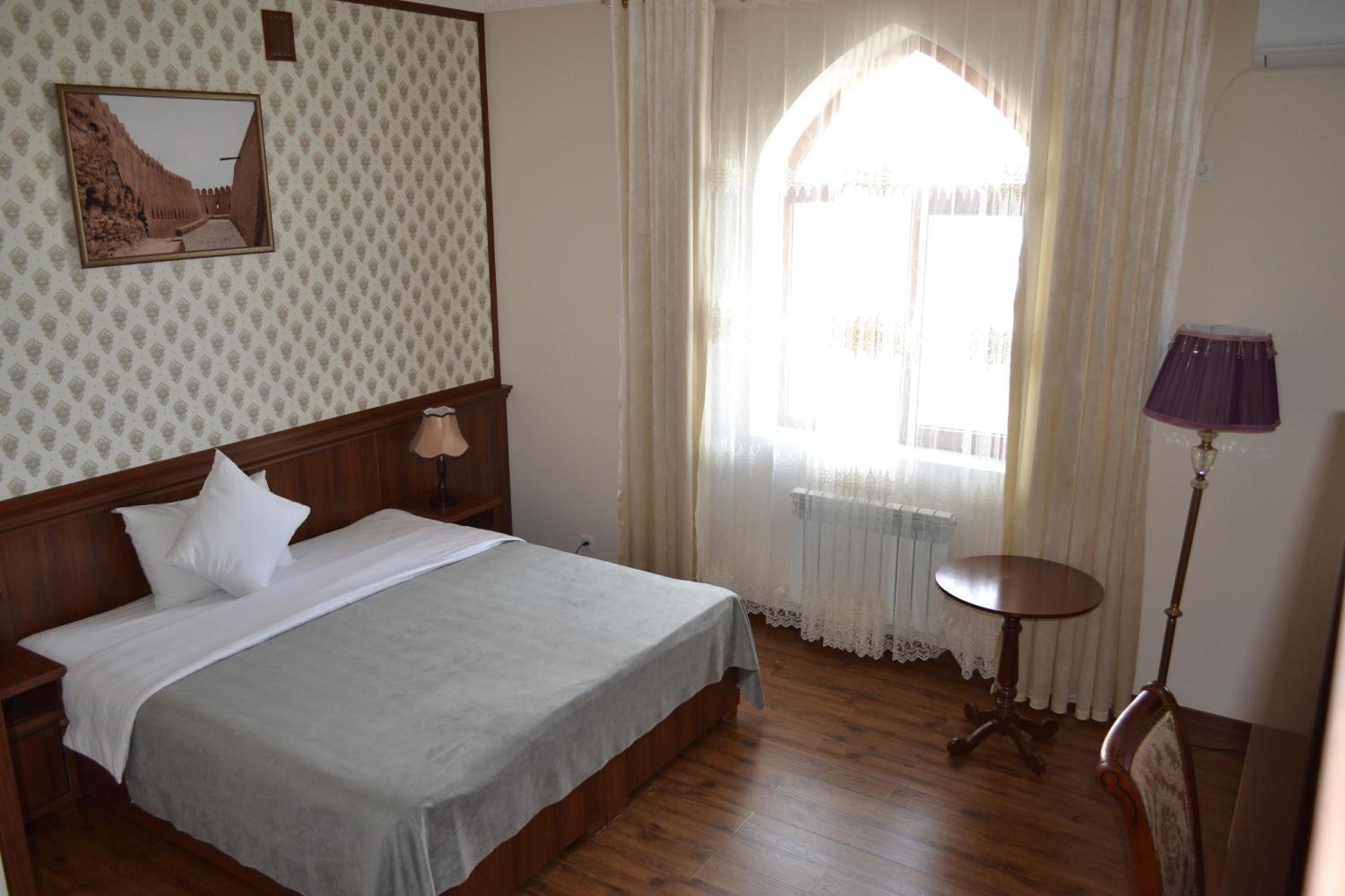Shohruh was very friendly and helpful and spoke very good English! The pick-up and drop-off service at airport were efficient. The bathroom had a bath tub which I suspect is very rare in Khiva! The view of the walls of Ichan Kala from our bedroom was great! The hotel had a beautiful garden.