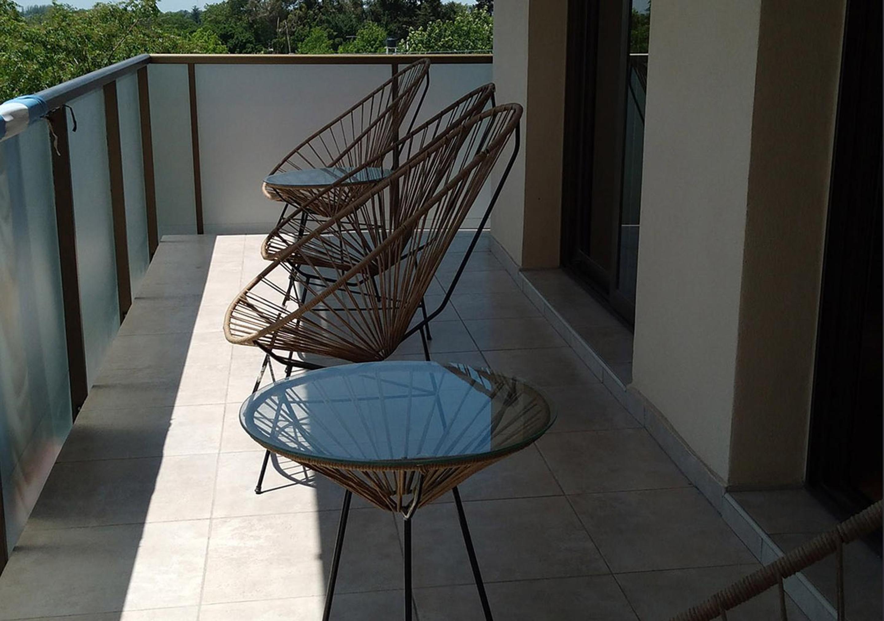 La habitación tenía un balcón al cual no podíamos acercarnos ya que la baranda estaba totalmente llena de tierra pegada por la humedad de lluvias y podía verse gotas marcadas en la superficie y ningún día llovió desde que llegamos. El piso del balcón ni qué decir.
