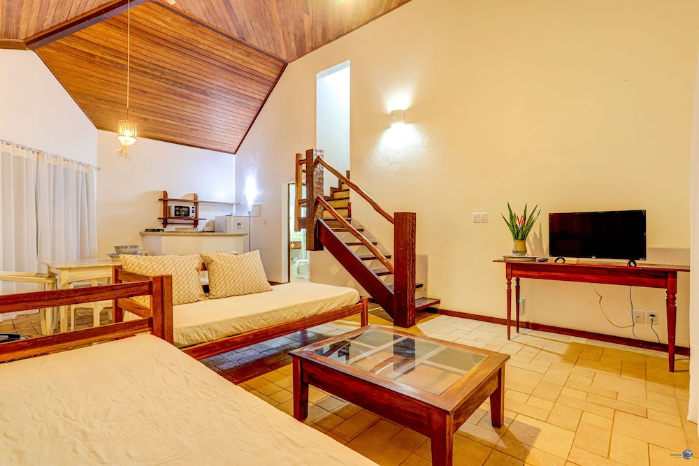 O local é ideal para quem busca contato direto com natureza, não possui asfalto até o hotel, o caminho para a primeira vez é um tanto confuso ja q tem outras estádias, condomínios e resorts na mesma estrada, não possui sinal de operadora vivo no local e no caminho, o bom é q o Wi-Fi funciona perfeitamente e não nos deixou na mão ja q tinhamos q trabalhar em alguns momentos. O local não é ideal para pessoas com mobilidade reduzida ja q possui muitas escadas para todos os lados... Pratos e bebidas do cardápio são caros comparando a quantidade fornecida, só possui pratos individuais, com valores absurdos d 90 a 200 reais, INDIVIDUAIS, tendo em conta q o local não é 5 estrelas, drinks na faixa d 40 reais, e fomos em família d 4 pessoas, mas o atendimento é ótimo e a praia linda...
