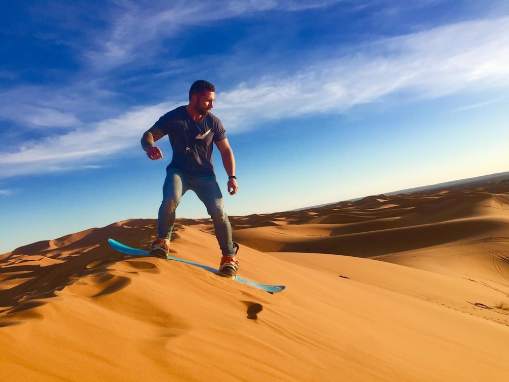La mejor experiencia, estuvimos el pasado enero y no tenemos queja alguna, desde que llegamos en la madrugada Omar nos ofreció donde quedarnos antes de llegar al campamento para poder descansar, el campamento es un lugar super cómodo, muy limpio y tienen la mejor atención. Se encargan de que en todo momento estes bien. Su comida es muy rica y Mustafa muy servicial. Said nos llevo a un paseo en dromedarios, es muy servicial y noble siempre dispuesto a tomar las mejores fotos. En nuestro segundo día Mustafa el hermano de Omar nos llevo a una excursión donde conocimos el pueblo de los nómadas, el desierto negro, zona de fusiles, barrio de los negros y las minas. Una experiencia muy completa y nos explico a detalle sobre la cultura verevere. Habíamos reservado solo una noche pero disfrutamos tanto que nos quedamos una mas.