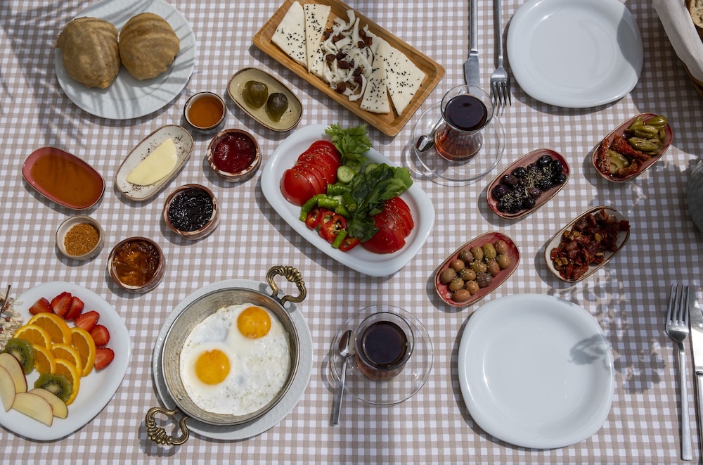 Picturesque Garden Views & Complimentary Local Cuisine Breakfast: Immerse yourself in the serenity of lush gardens while waking up to a delicious local breakfast spread included with your stay at Salkım Butik Otel each morning.