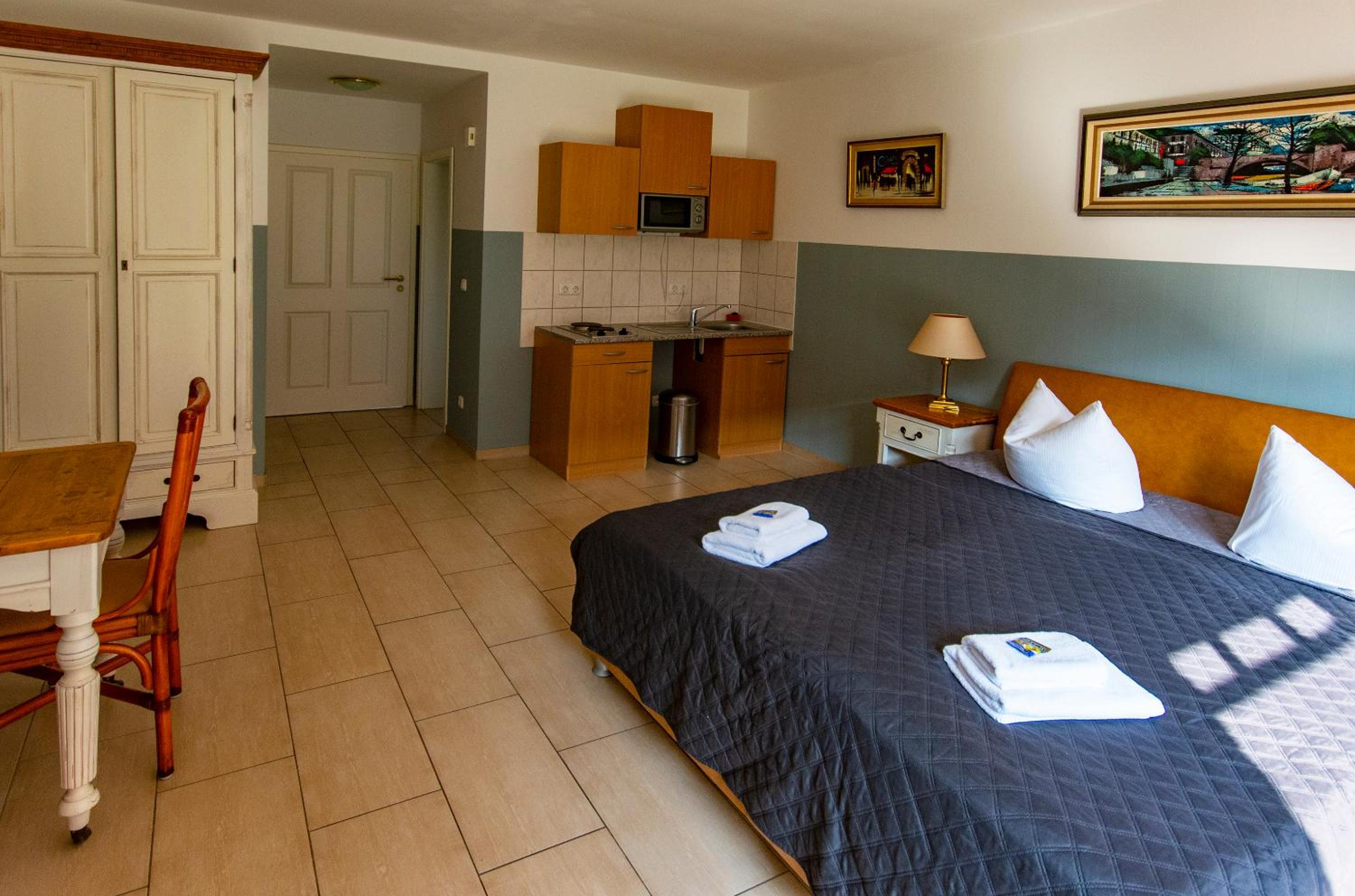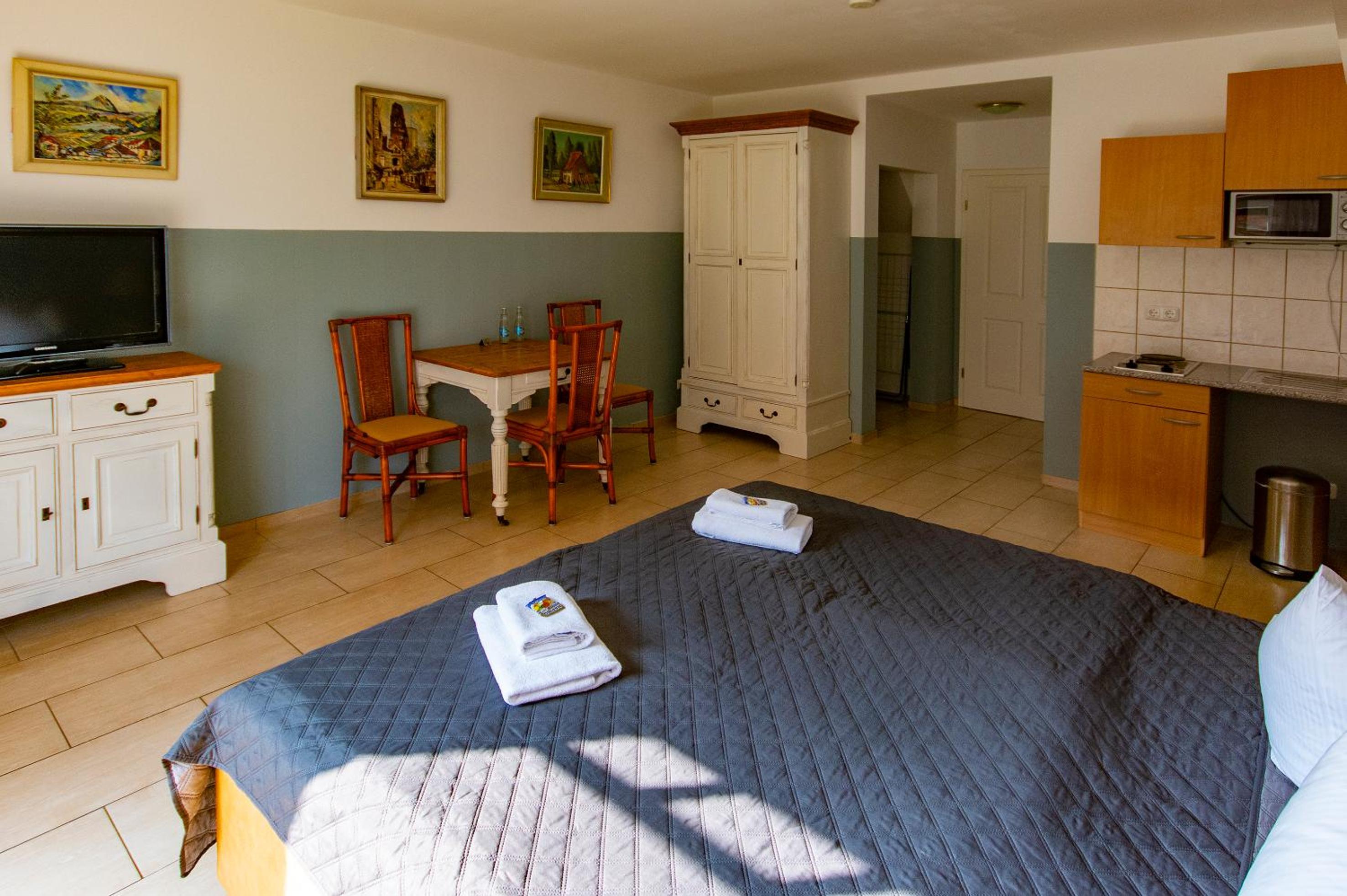 Der Check in am Anreistag war sehr freundlich und unkompliziert. Frühstück konnten wir vor Ort mit zubuchen. Auch unser Hund war willkommen und hat sich wohlgefühlt. Durch die Nähe zu Karls Erdbeerhof konnten wir unser Auto in der Unterkunft stehen lassen und dorthin zu Fuß gehen.