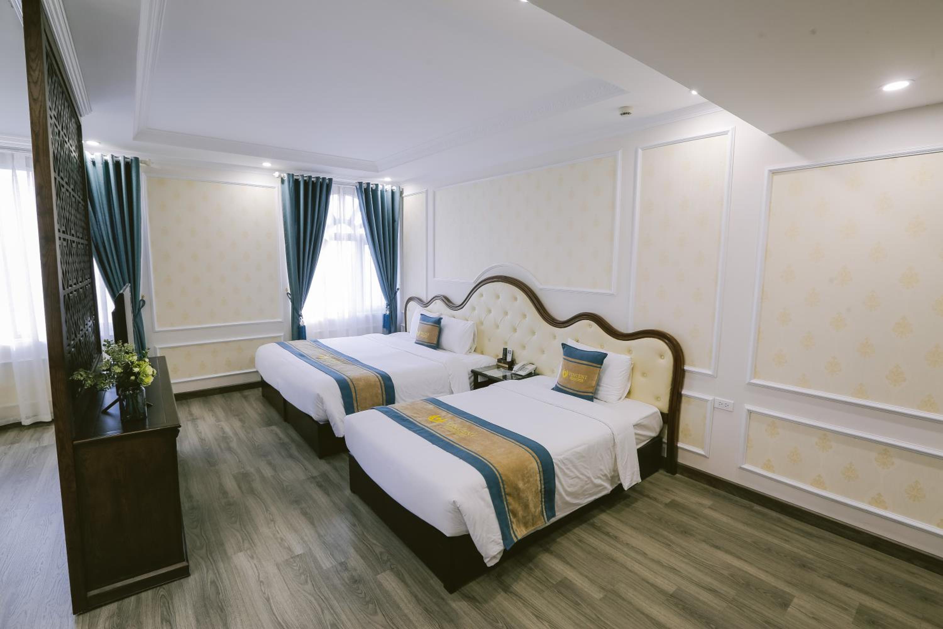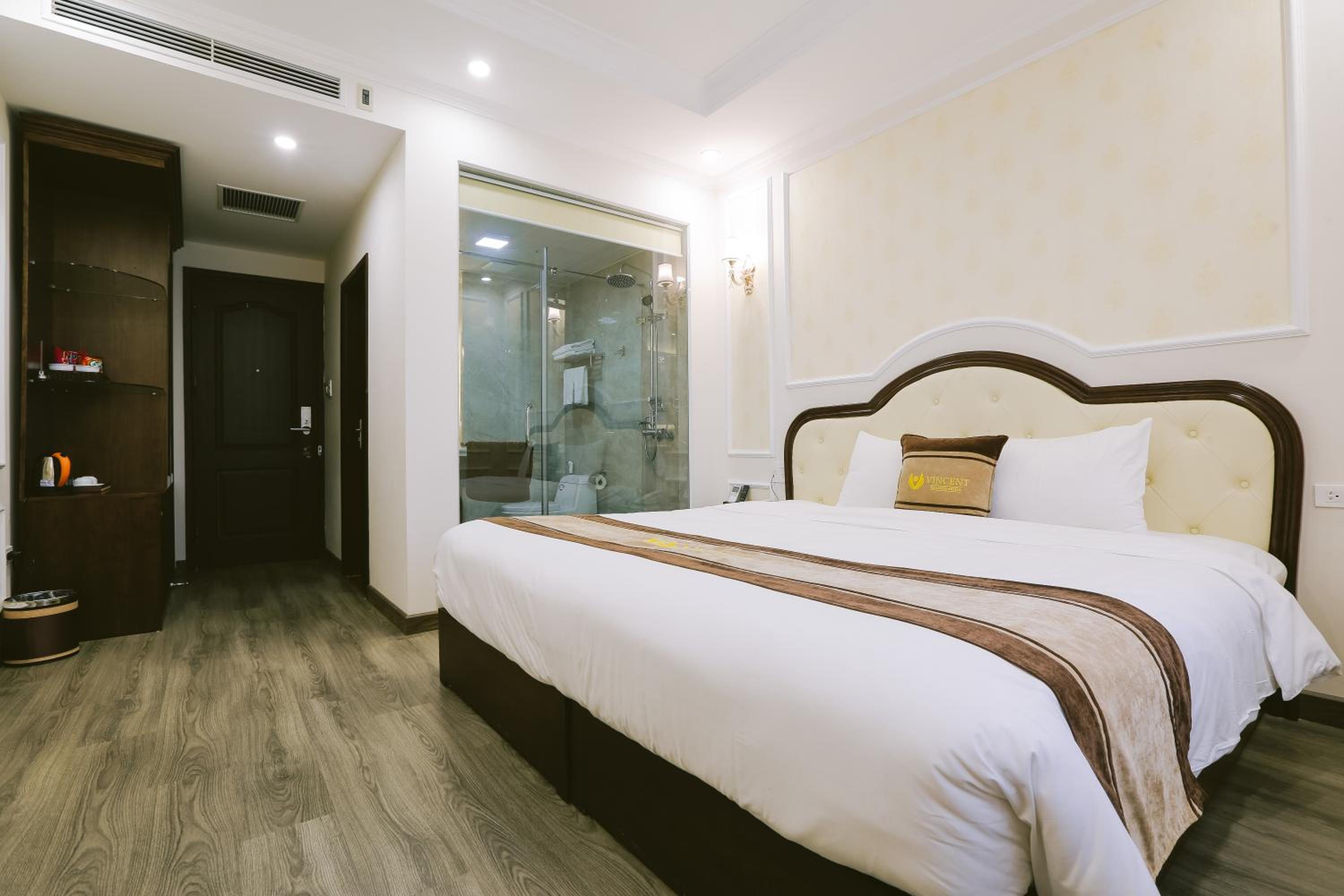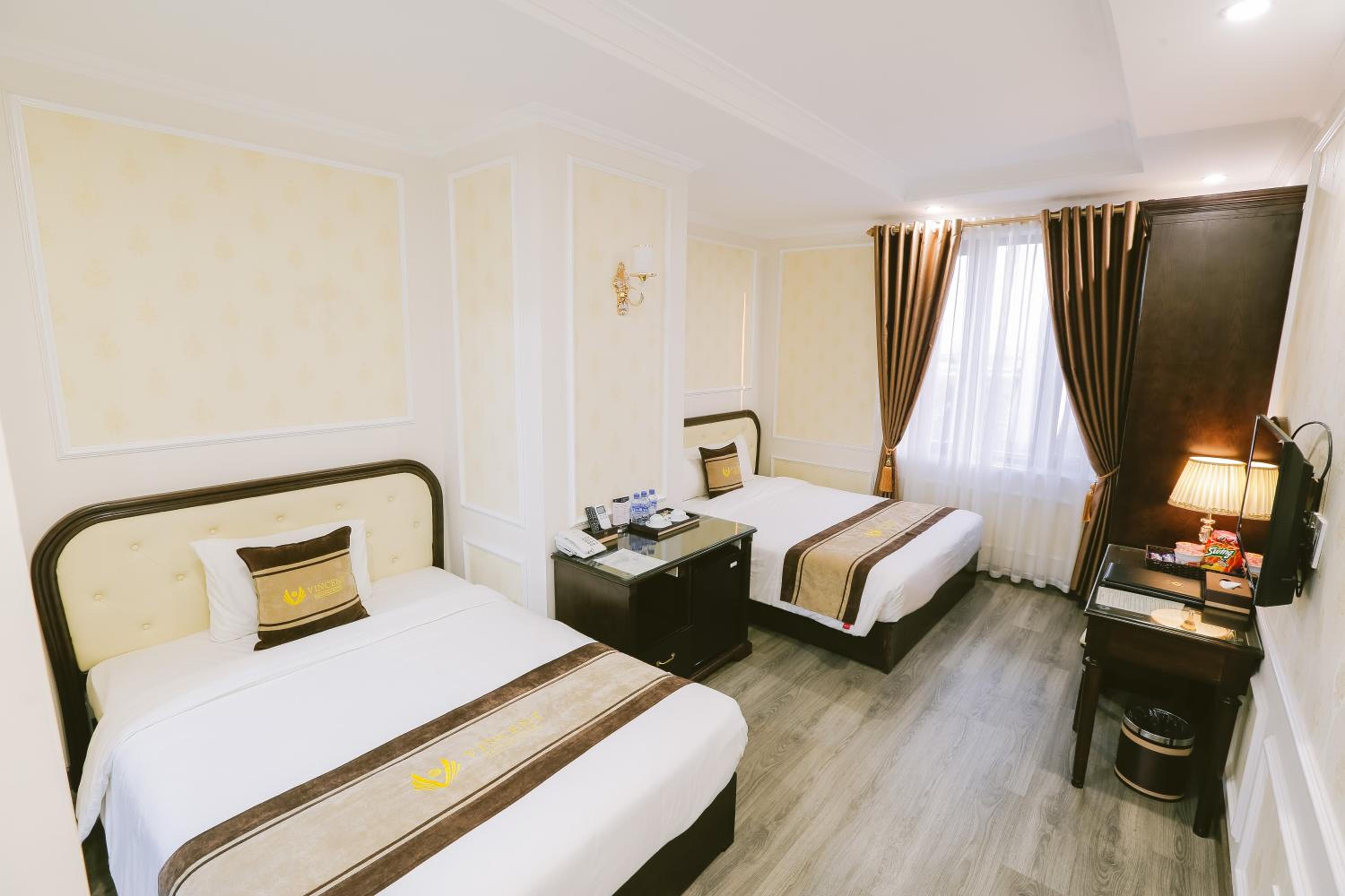 Vincent Halong Hotel offers elegant rooms with modern amenities such as air conditioning, flat-screen TVs, and free toiletries. Some rooms even provide stunning city views, ensuring a comfortable and memorable stay for all guests.