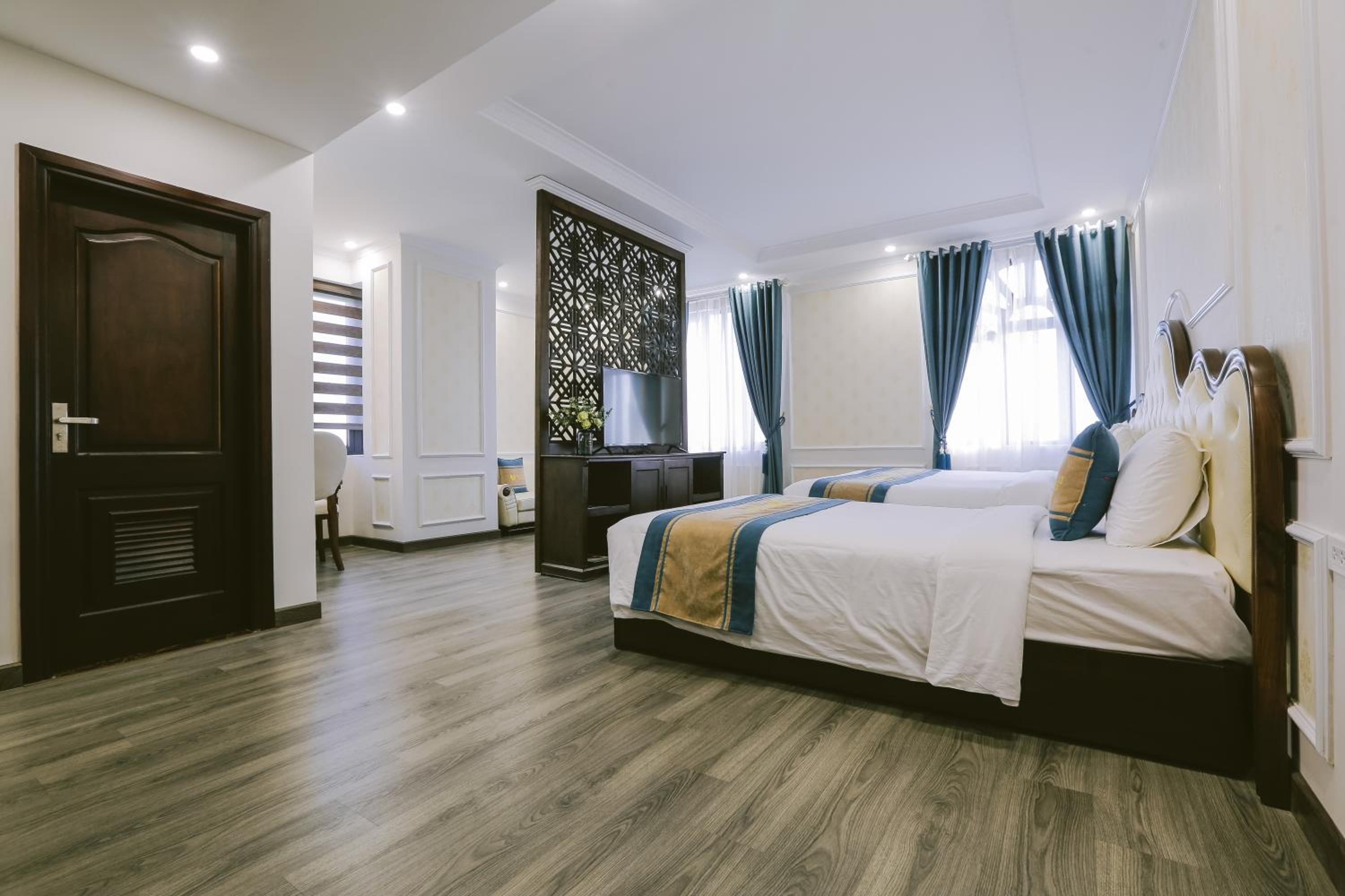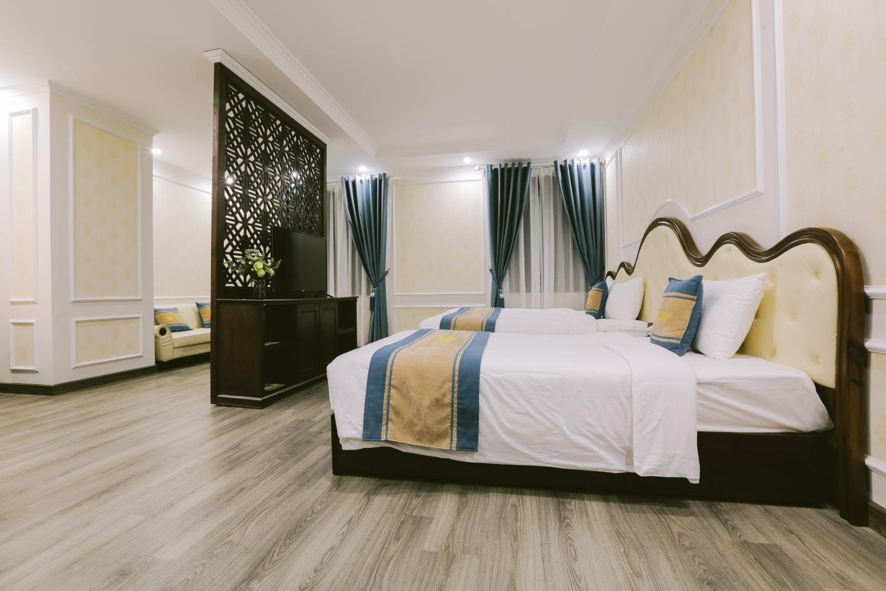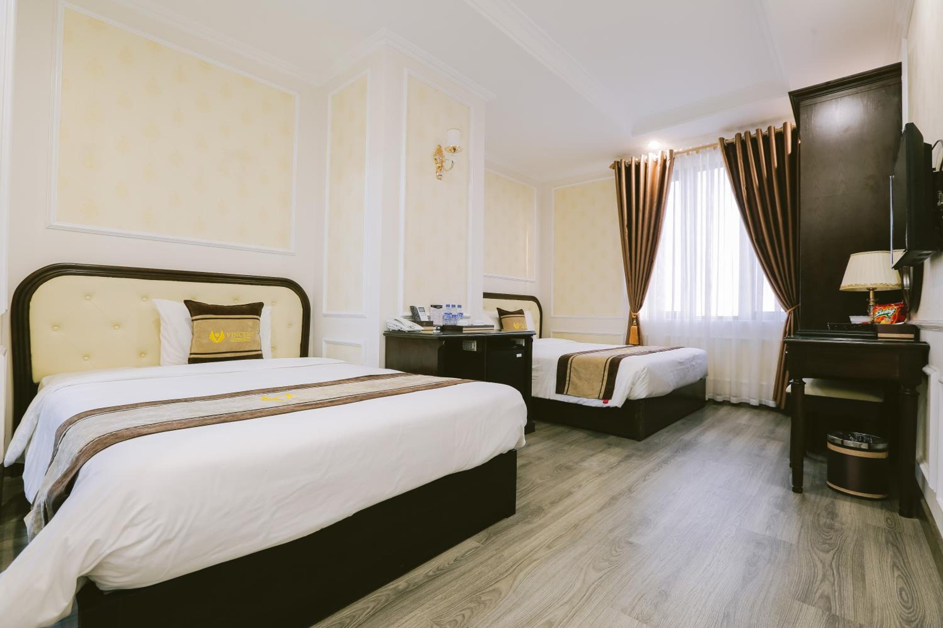 Vincent Halong Hotel offers elegant rooms with modern amenities such as air conditioning, flat-screen TVs, and free toiletries. Some rooms even provide stunning city views, ensuring a comfortable and memorable stay for all guests.