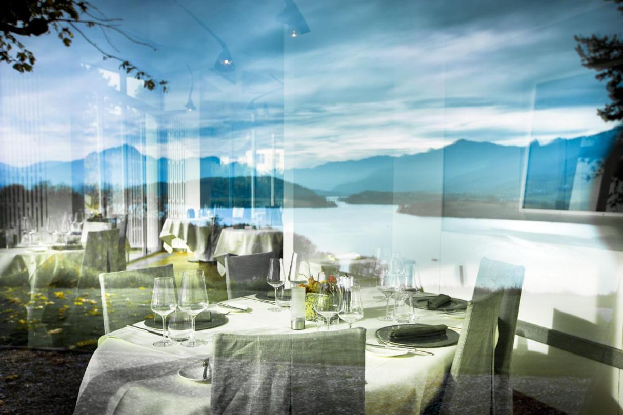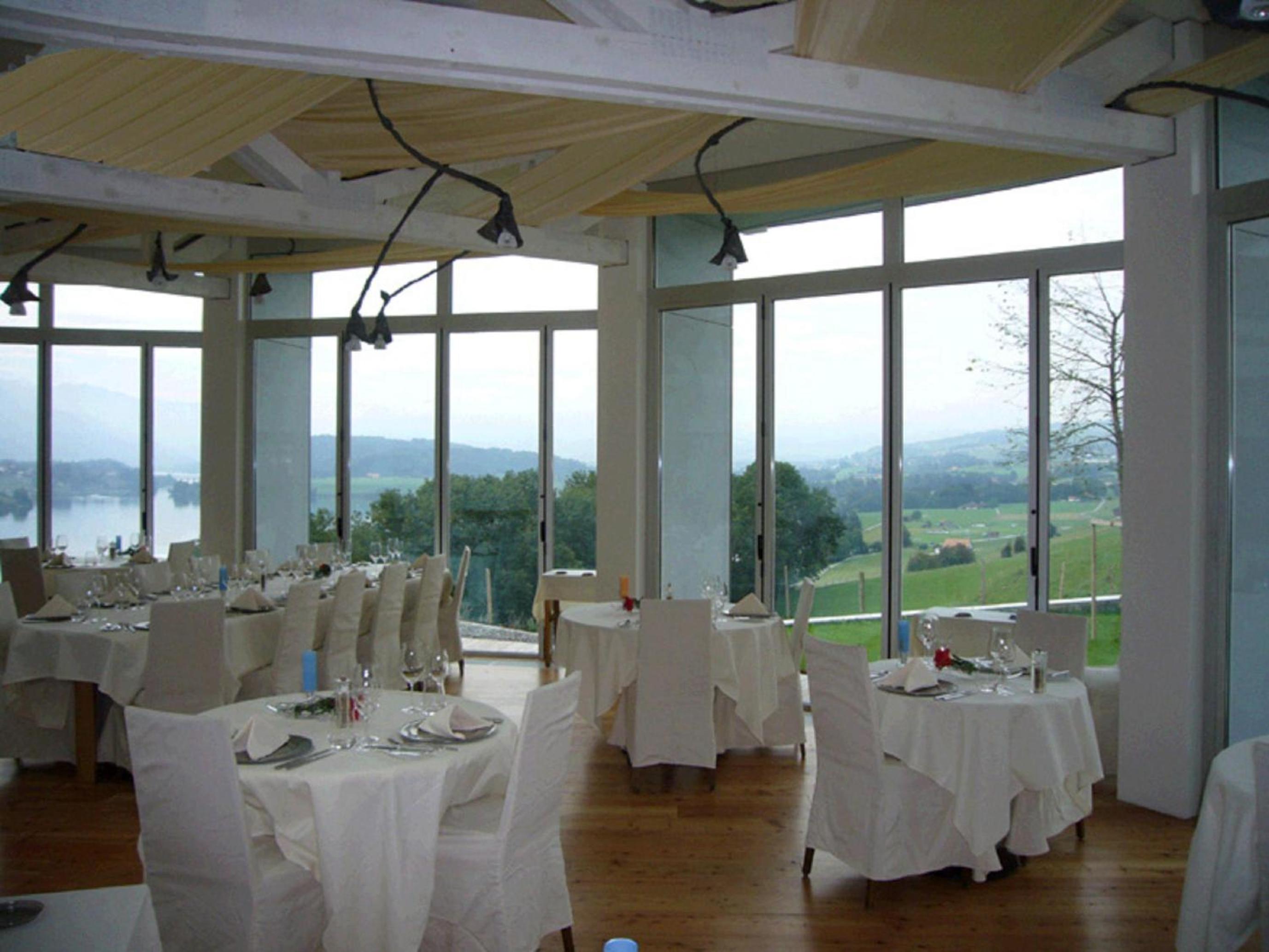 Enjoy breathtaking views of Lake Gruyère and the Fribourg Pre-Alps while dining at the award-winning restaurant with a veranda. Indulge in Swiss and international cuisine, including fresh fish from the lake.