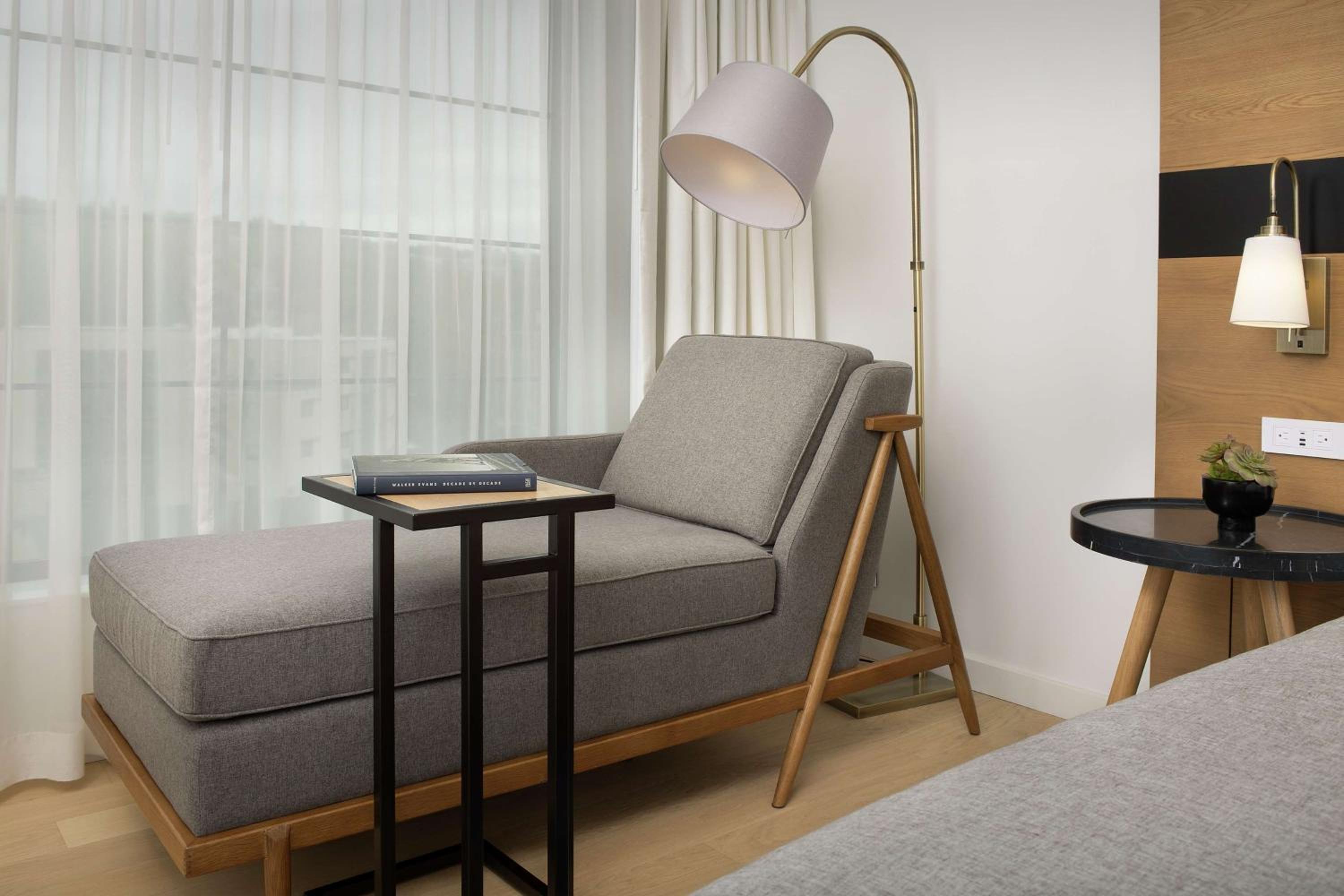 This is a beautiful, modern property with lovely finishes and details. There was plenty of closet/storage space in our room, quick elevators and a spacious, cozy lobby with a fireplace. The staff was super friendly and helpful and the bed was so comfy. I loved the refillable water stations on each floor.