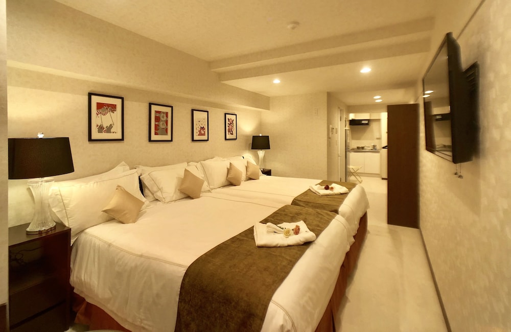 Room was clean, comfortable, and like a small apartment as it had a kitchen and clothes washing machine. Short walk to the JR train station. Spacious enough for four people.