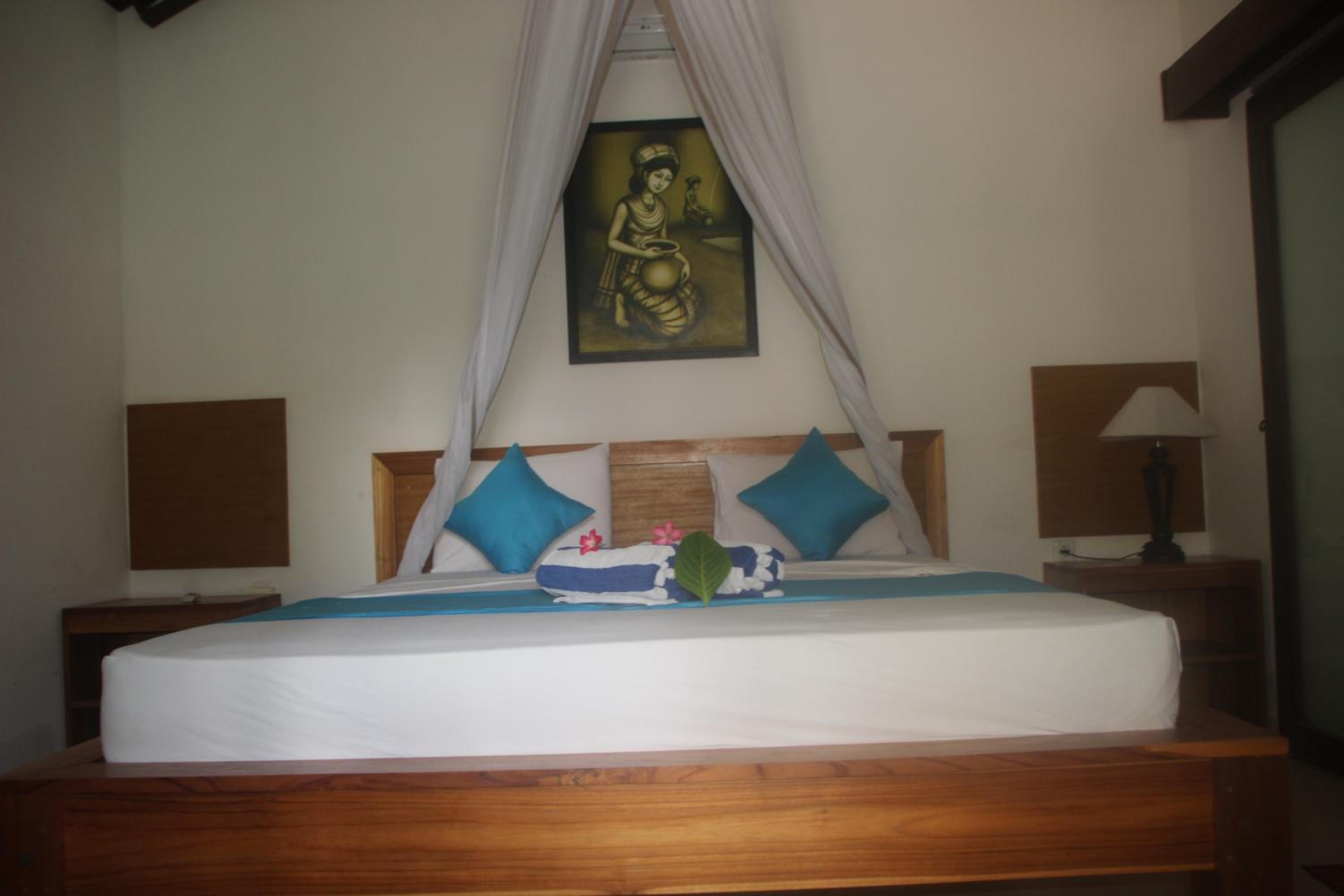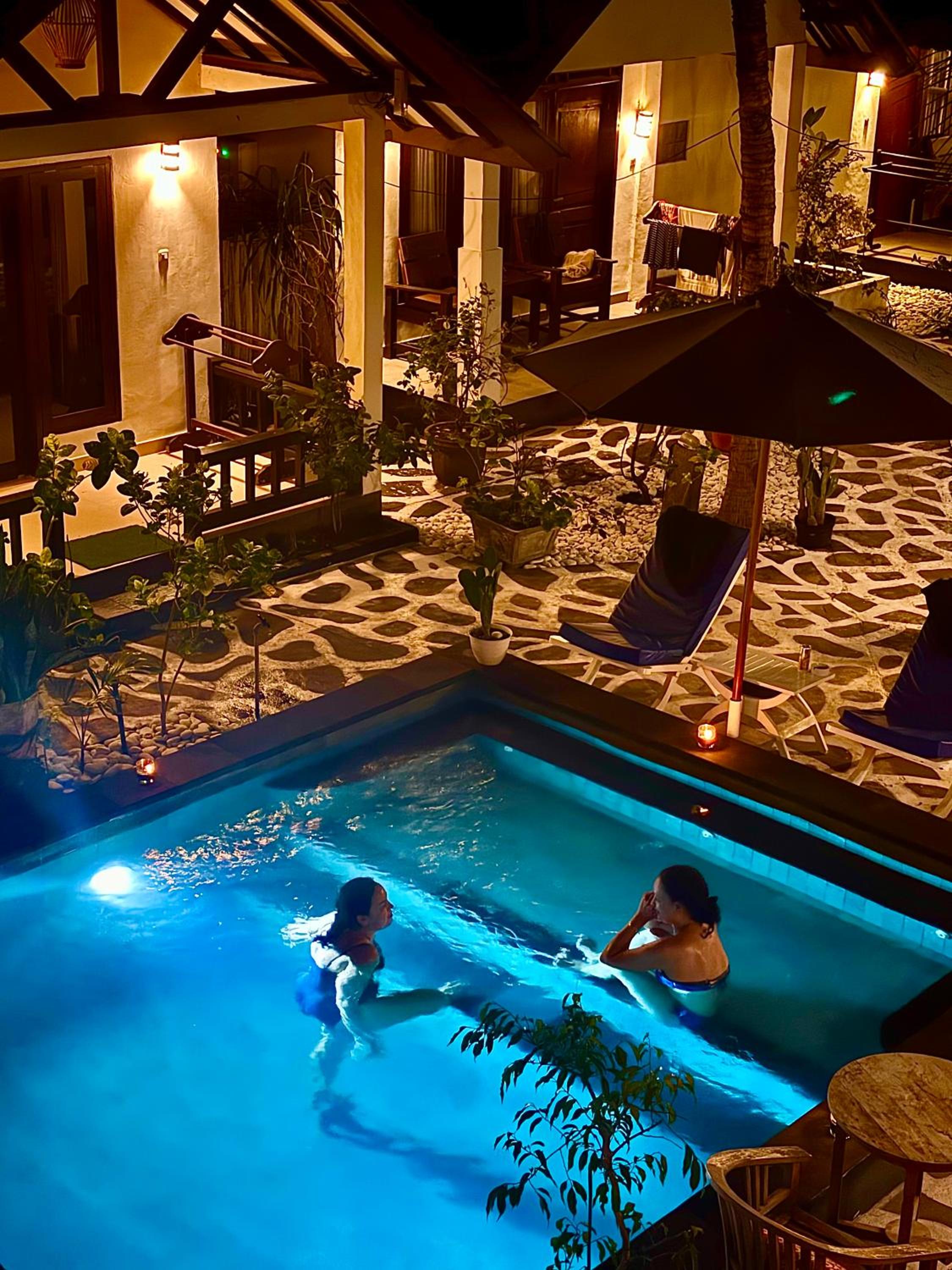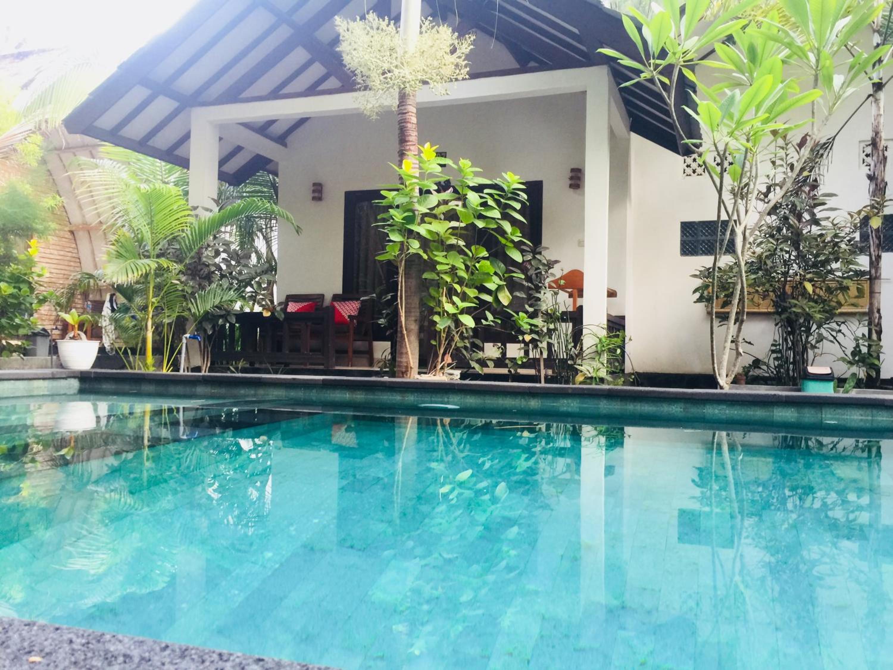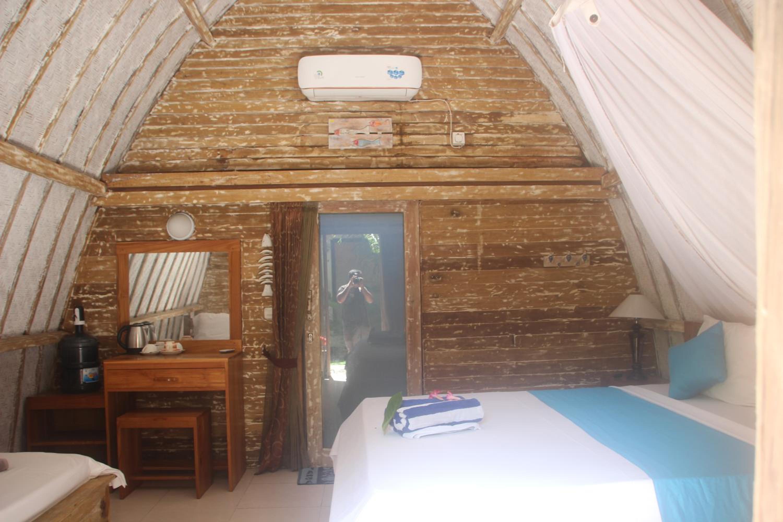Great location right across from the beach but away from the harbour. Comfortable poolside bungalow that was cleaned every morning. Great cafe with a good breakfast. Mini fridge and lots of water. Hot water in the shower. Frendly family of cats