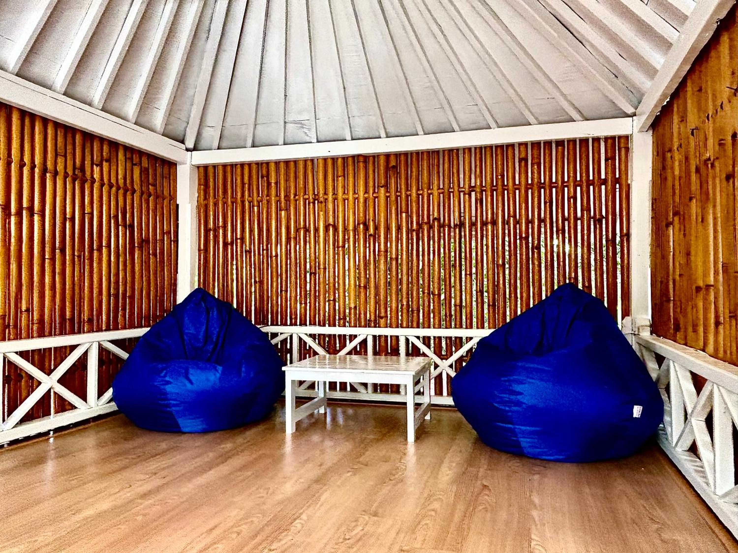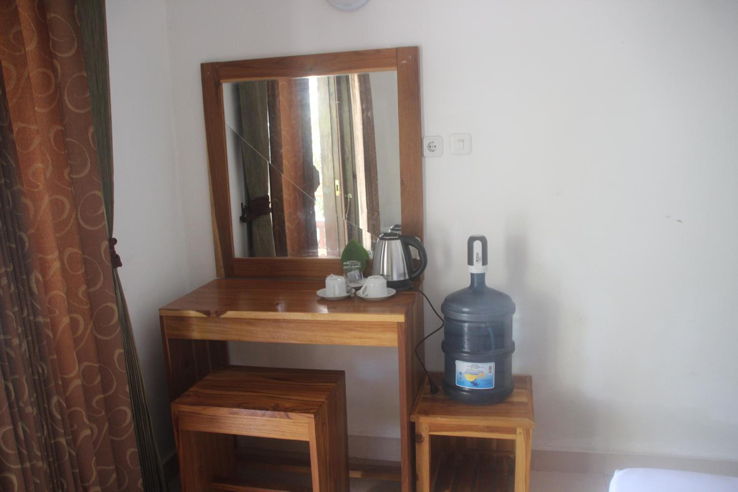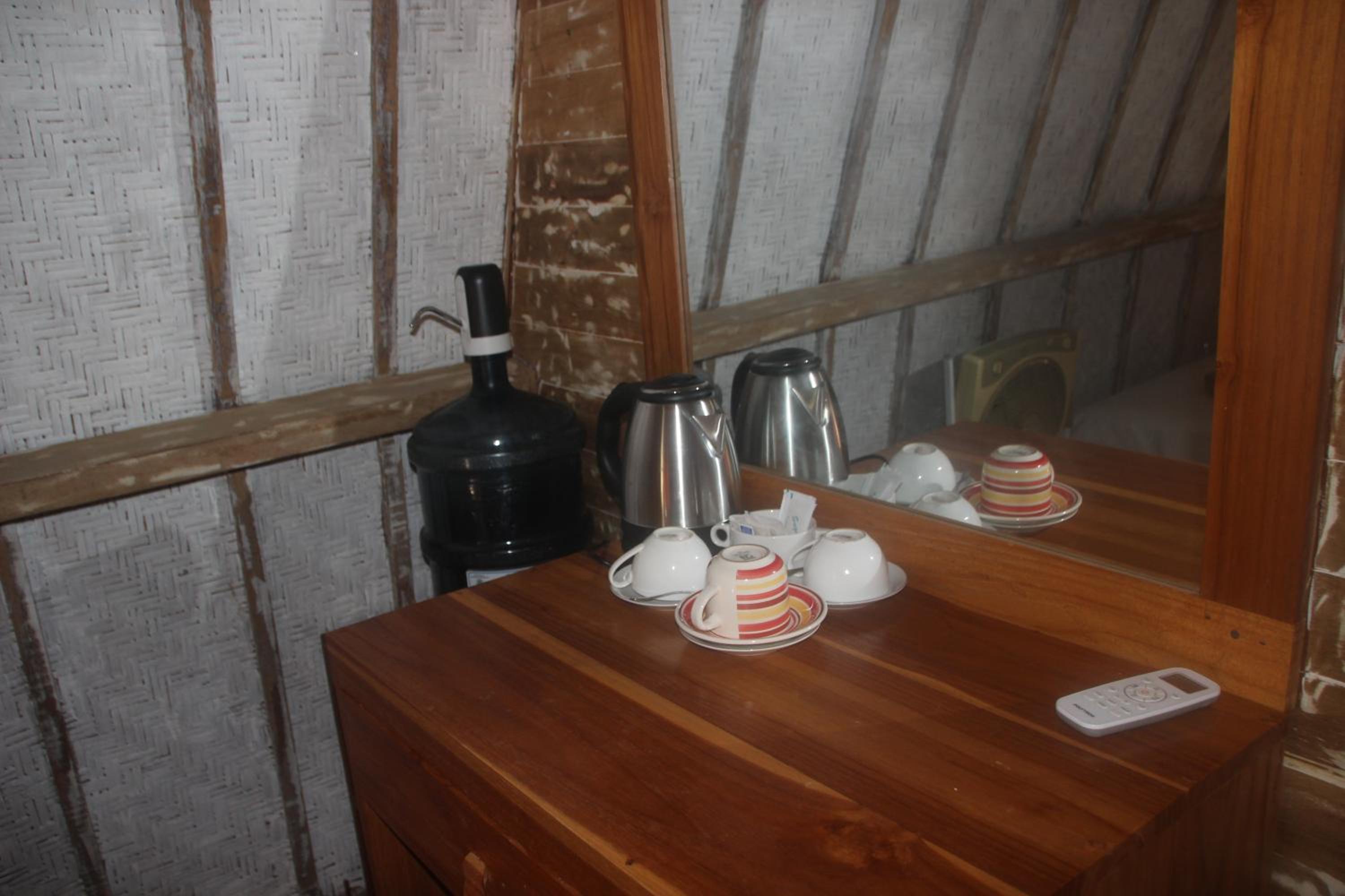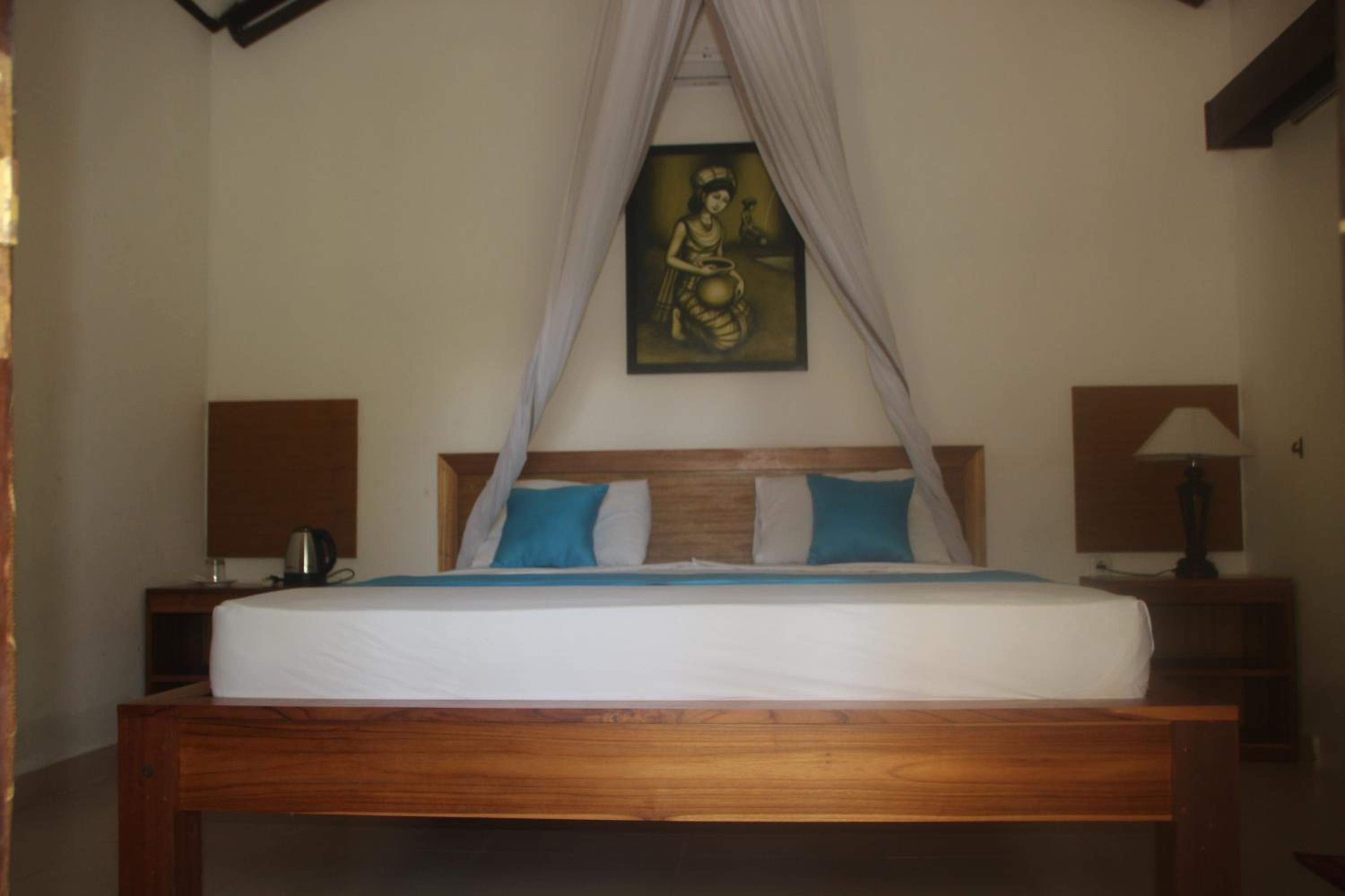 Great location right across from the beach but away from the harbour. Comfortable poolside bungalow that was cleaned every morning. Great cafe with a good breakfast. Mini fridge and lots of water. Hot water in the shower. Frendly family of cats