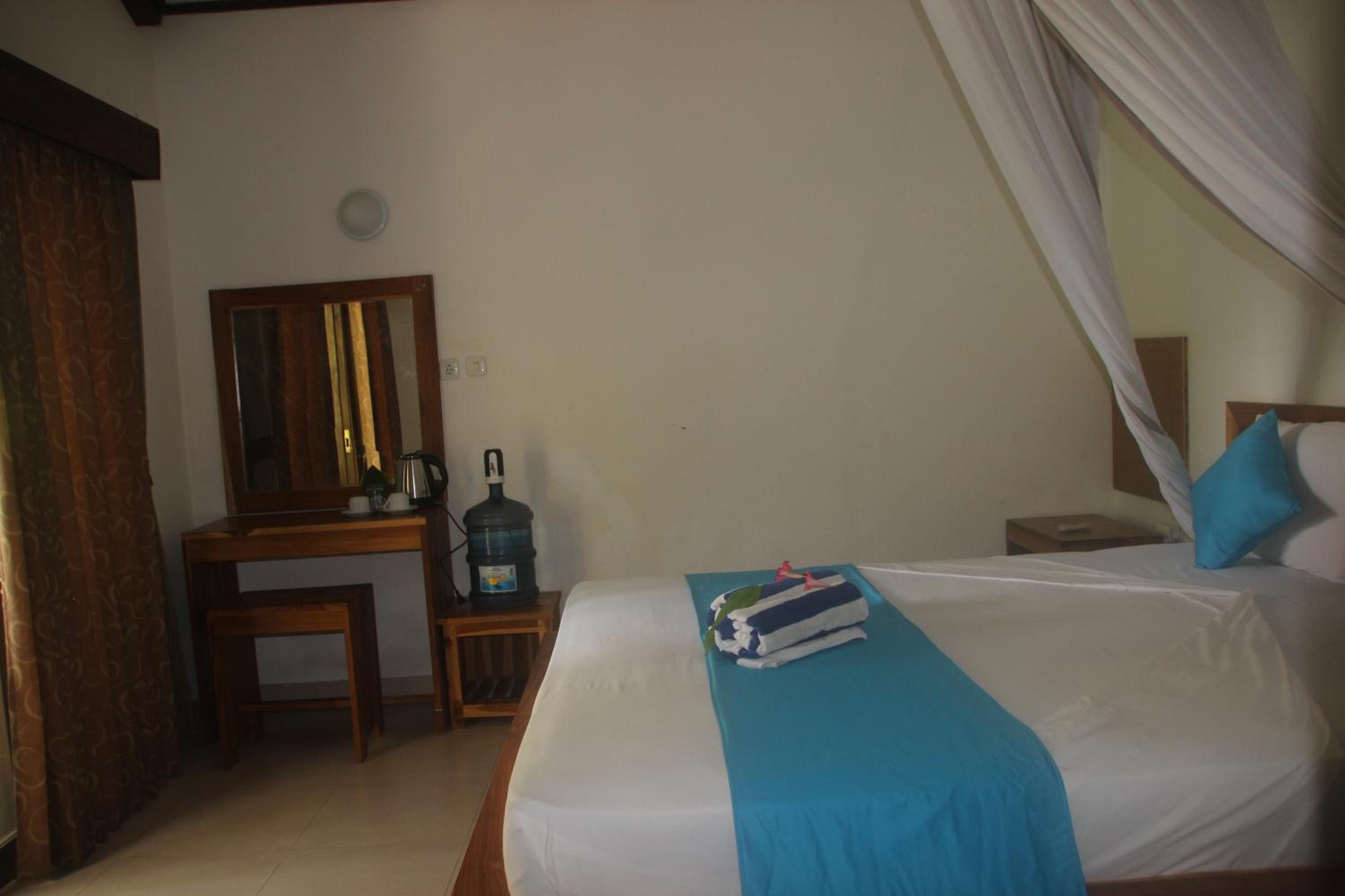 Chambre et salle de bain spacieuses, très agréable. Le personnel est souriant et sympathique. Les bungalows sont très bien situés, face à la plage. Le restaurant est également très agréable et les plats sont bons.