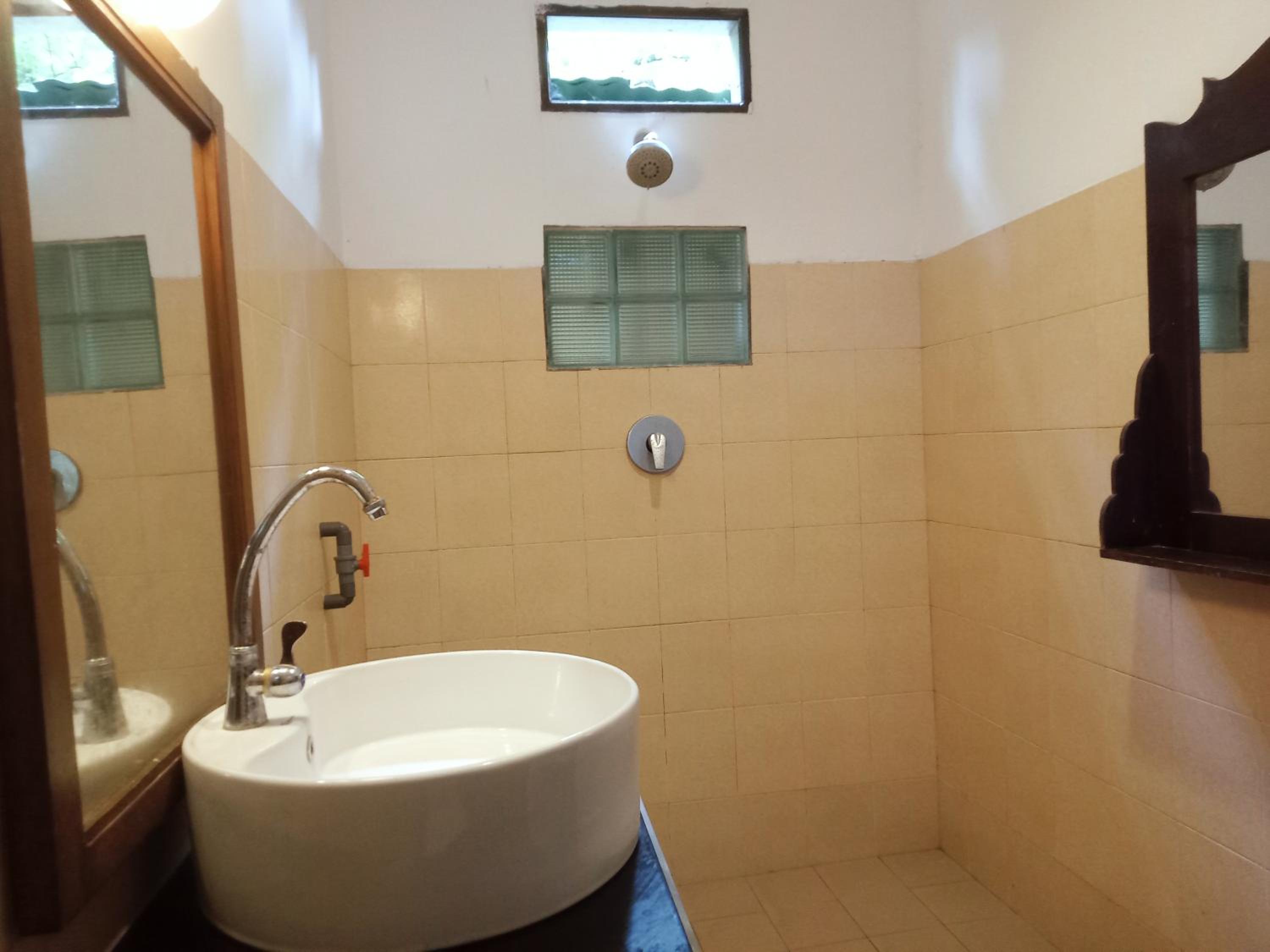 Each room features a fan, desk, wardrobe, and a private bathroom with a separate shower and toilet, ensuring a comfortable stay for guests.