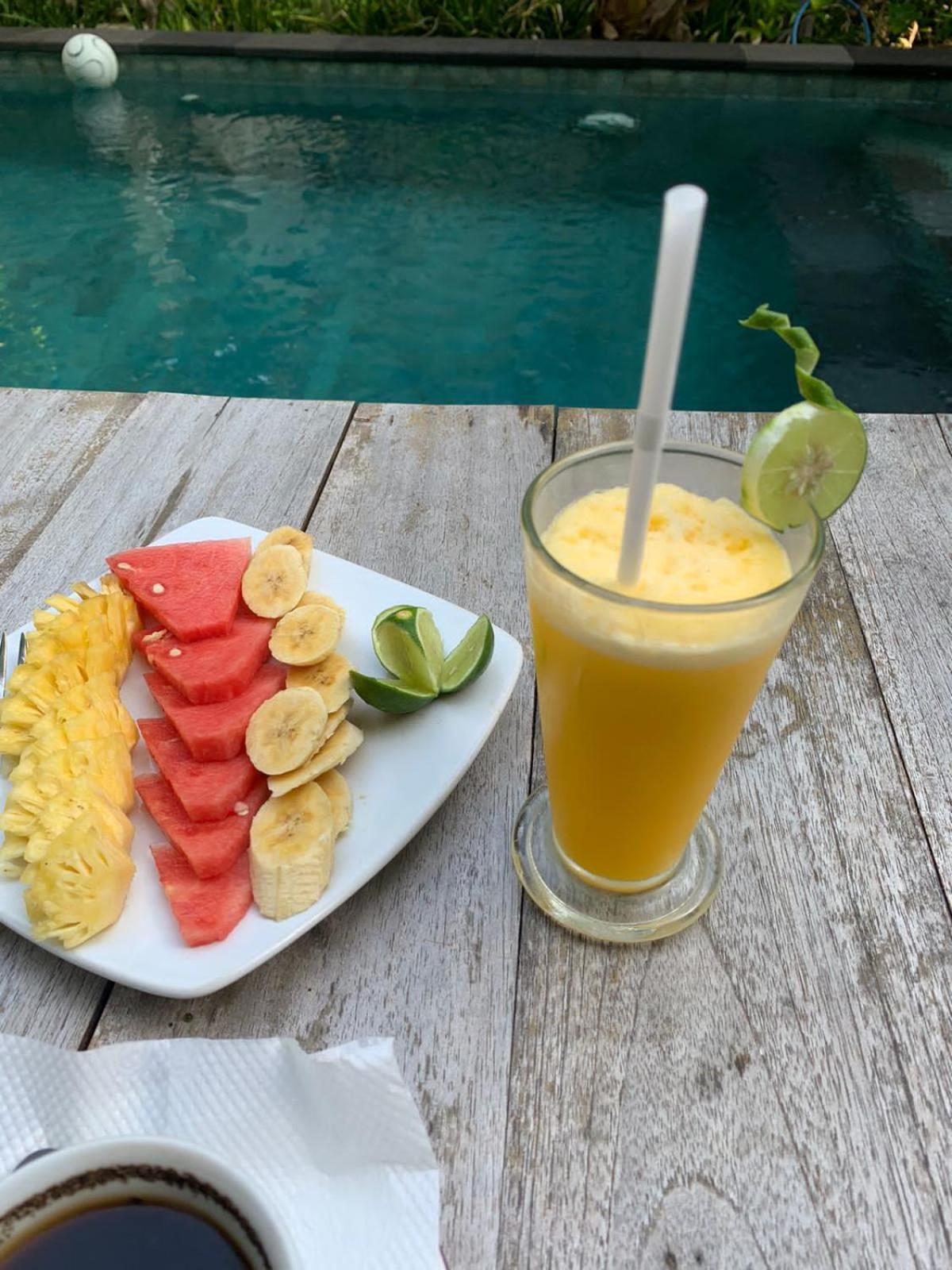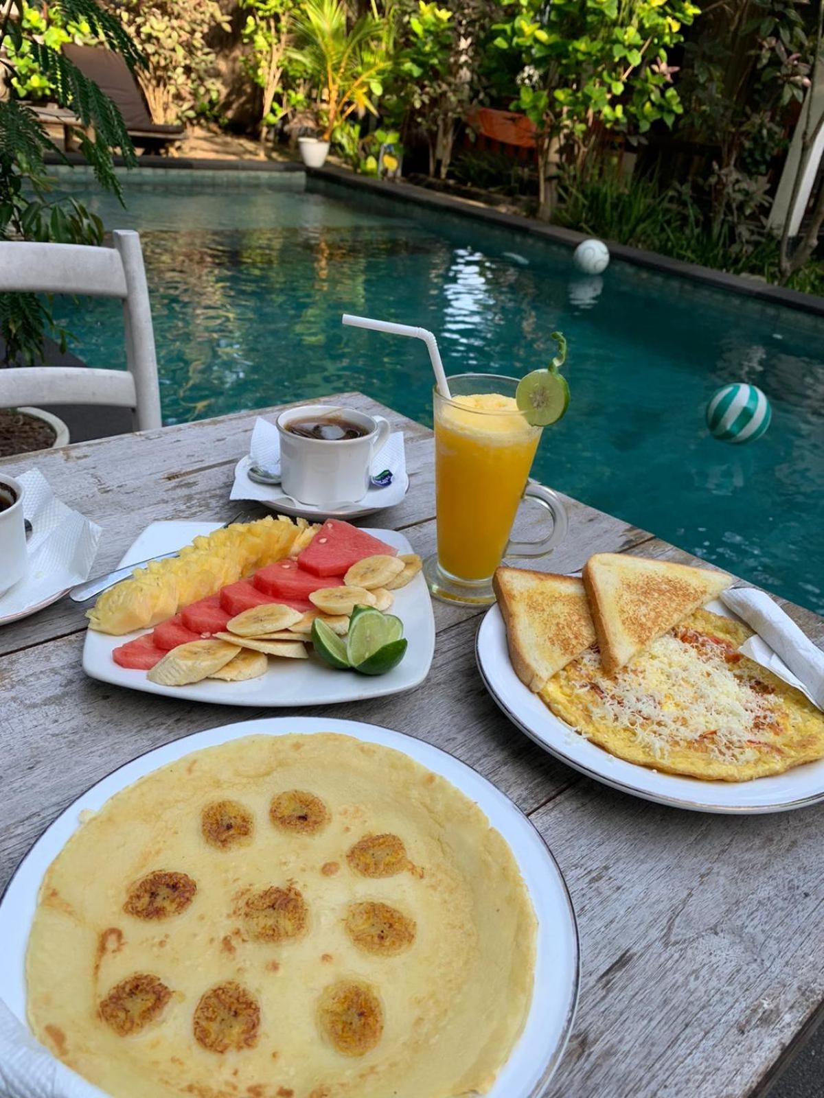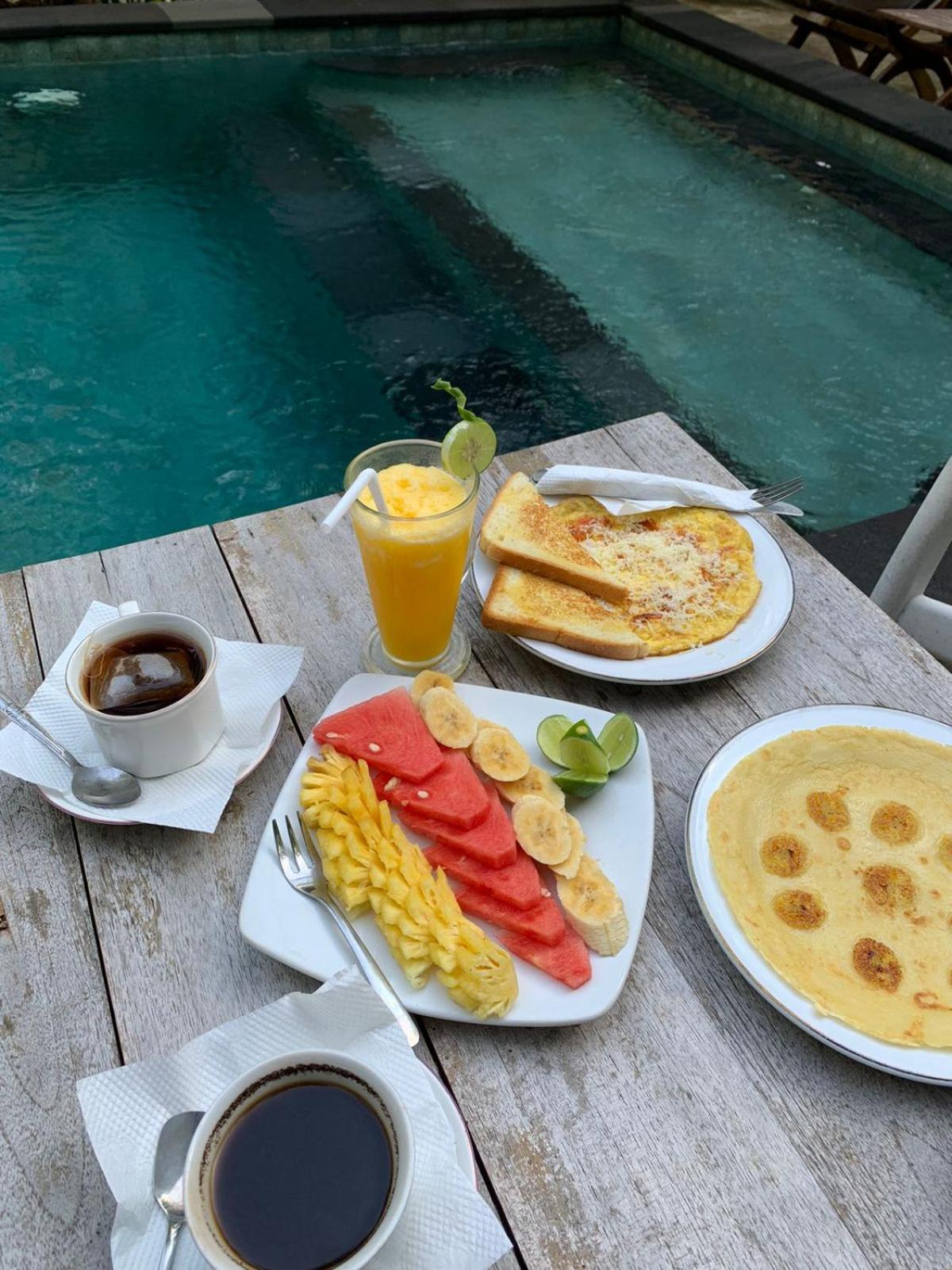 The location is on the beach, with breakfast included. The accommodations were basic, with everything we needed. The pool was down the path, and a very enjoyable, lovely setting with many shady trees around the complex, making it a very comfortable place to relax.