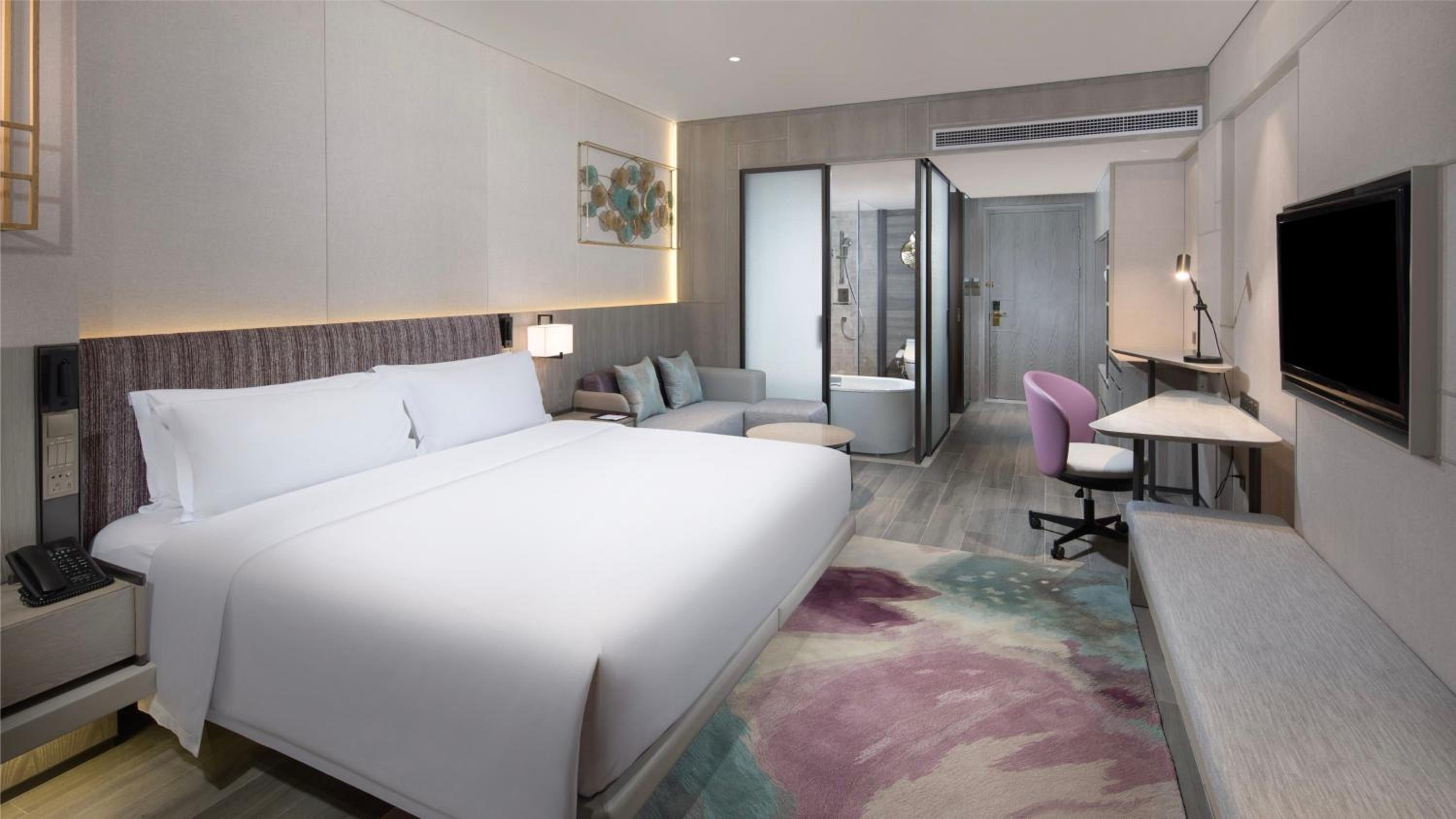 The Crowne Plaza Deqing Moganshan offers spacious and elegant rooms with soothing colors and modern amenities, ensuring a comfortable stay for every guest.