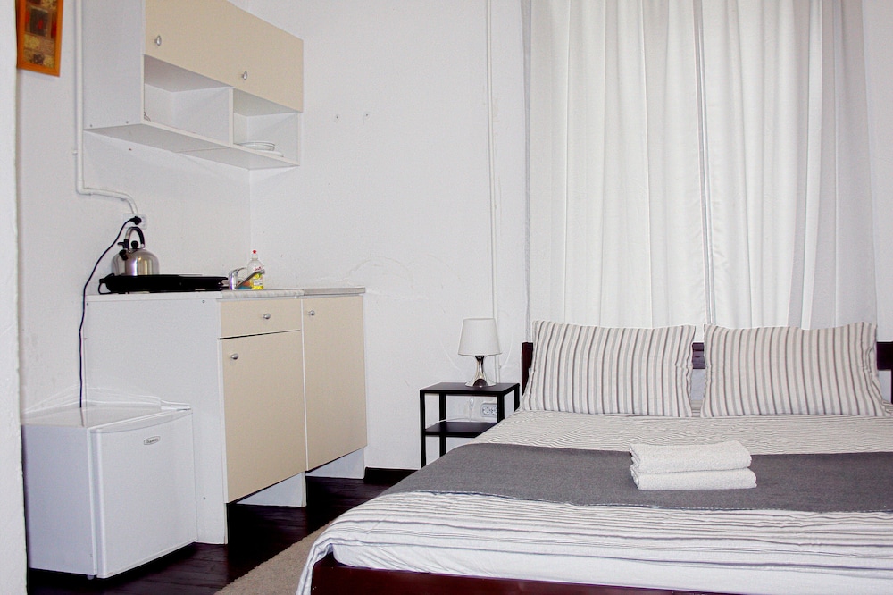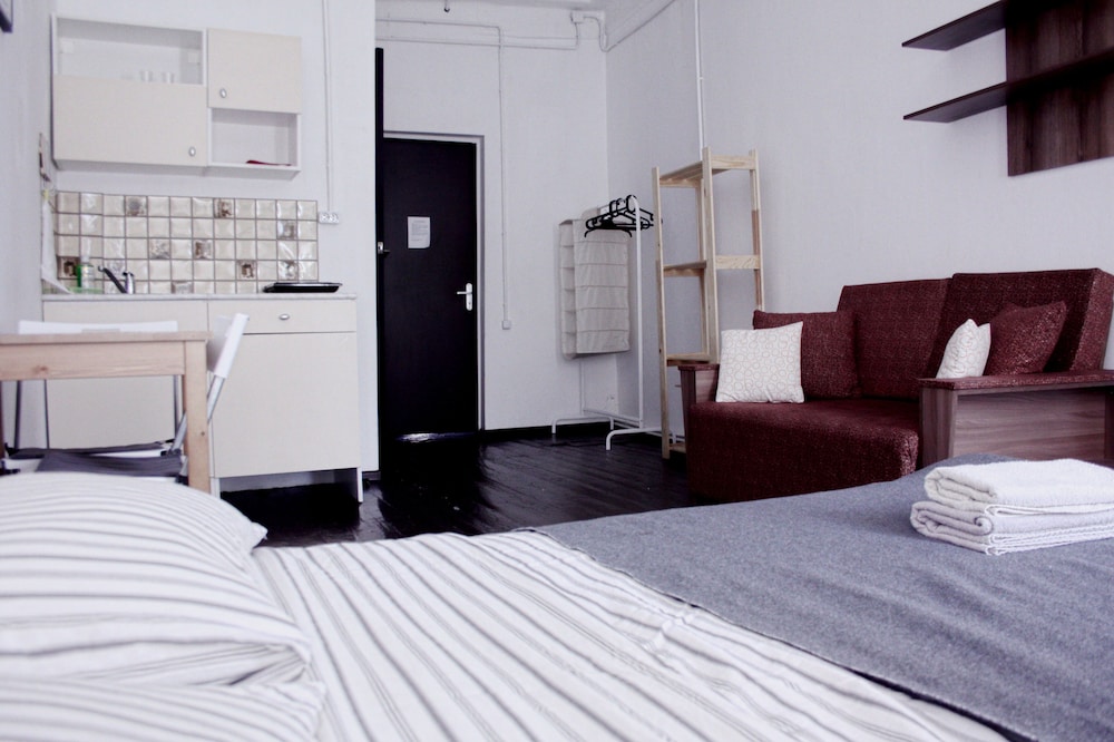 Здравствуйте. Были почти месяц, нам нужно было жилье рядом с больницей. Это бюджетный вариант жилья. Конечно месяц жить тяжело, тк очень тонкий матрац, кровать вся скрипит, за окном дорога и всё время шум машин и днем и ночью, нет телевизора, маленький холодильник. А так для остановки на несколько дней вполне сносно. В комнате есть кухня (именно так и искали), можно спокойно готовить кушать, по кафешкам не находишься и не наешься, быстрее раразоришься. Каждый день уборка в здании, в номере сами убирались, так удобнее. Постель и полотенца меняли как только попросим, можно также отдать вещи в стирку. И главное,что до метро близко.