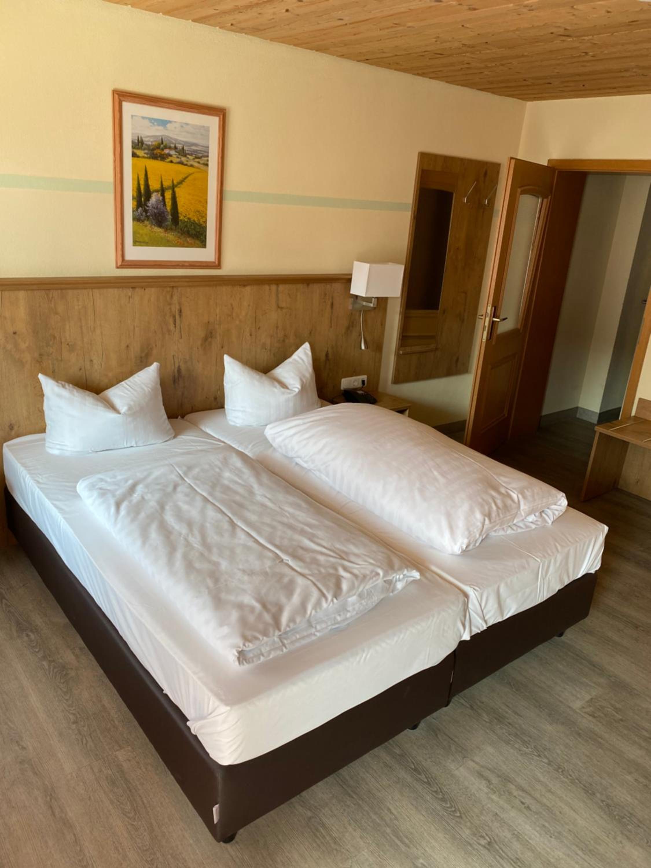 Großes Zimmer mit Doppelbett, Sitzecke und Balkon. Modernisiertes Bad. Bademantel vorhanden. Gute Sauna, kleines Schwimmbecken.