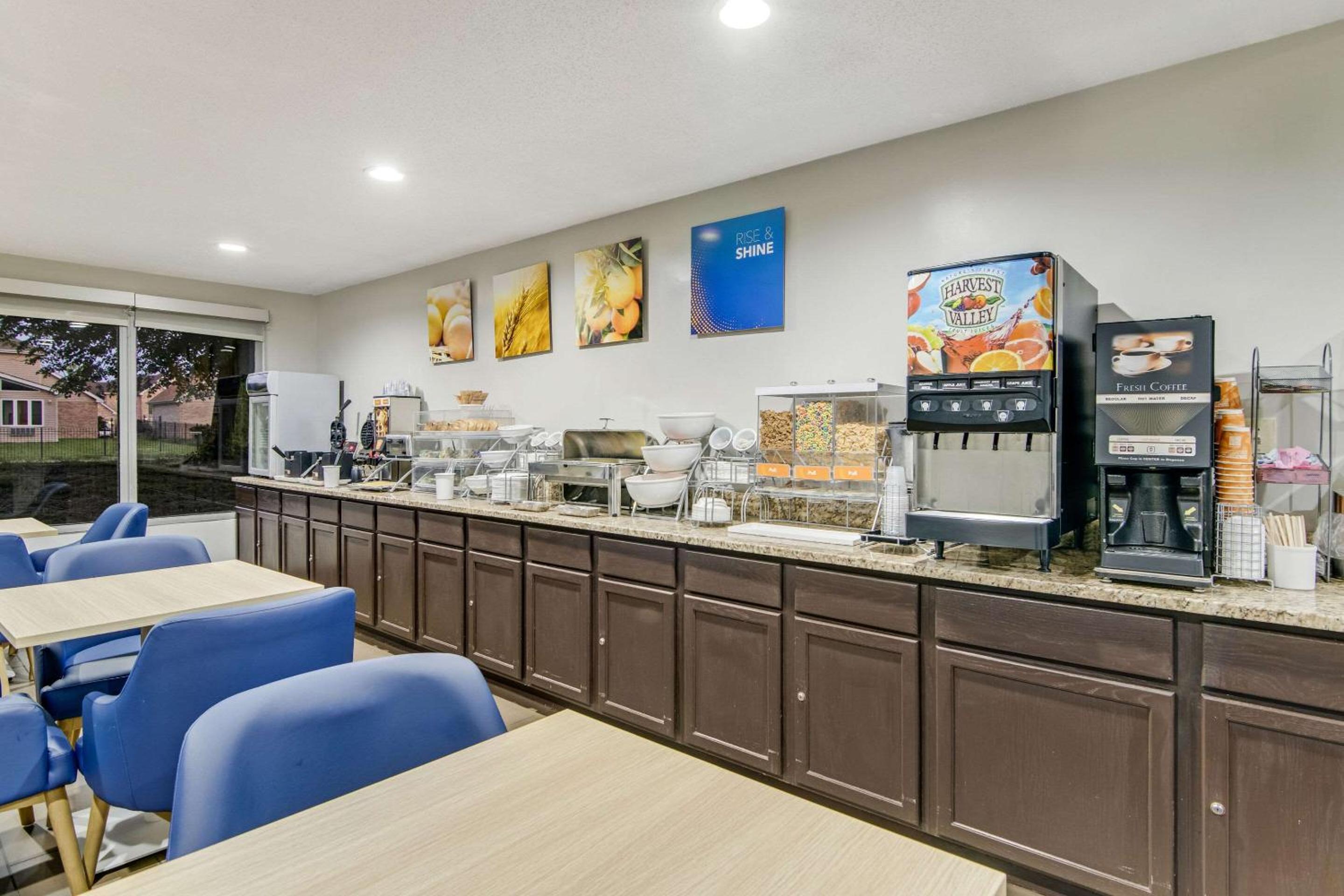 Guests can unwind in the heated indoor pool, stay active in the on-site gym, and start their day right with a complimentary continental breakfast.