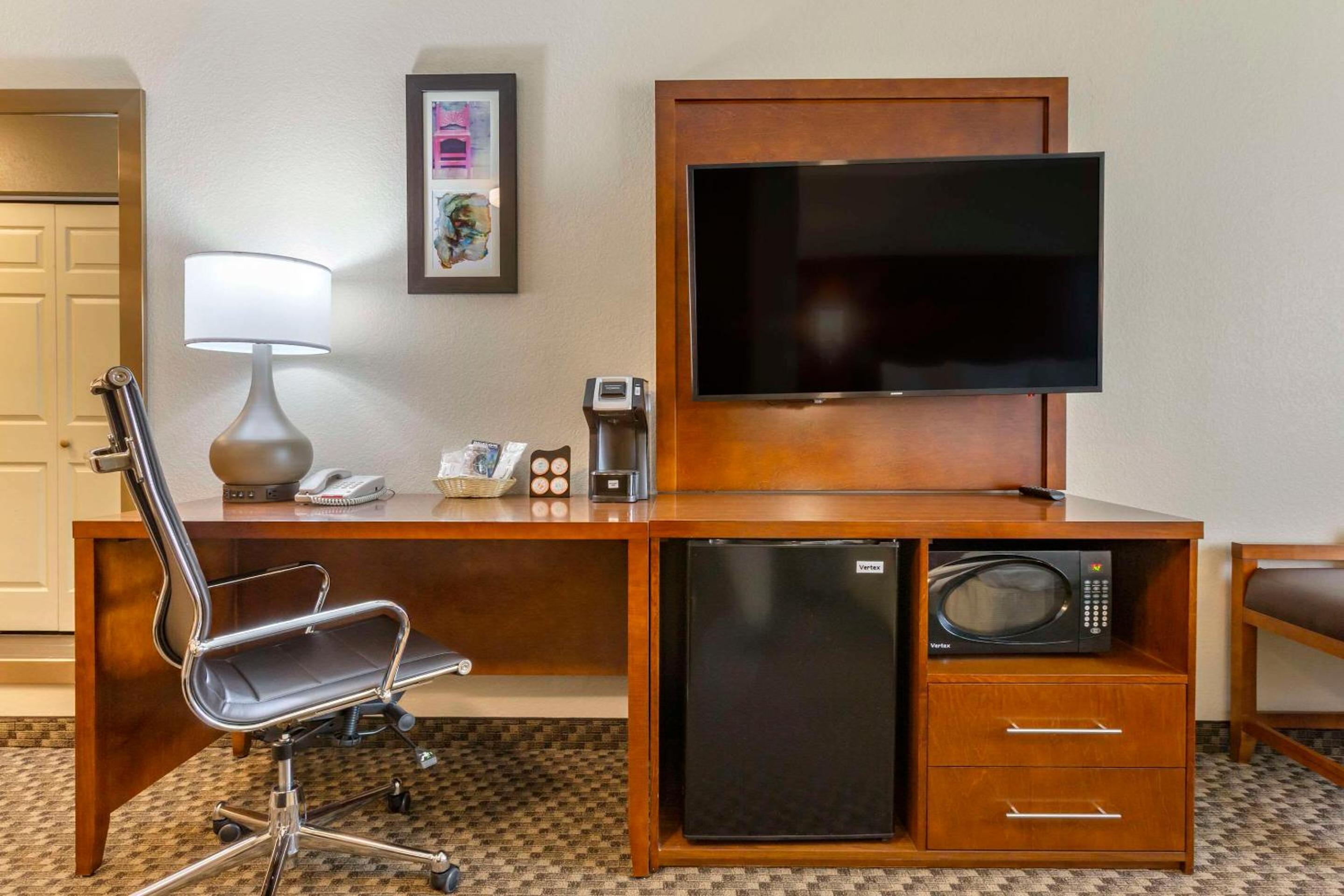 Each suite at the hotel is equipped with essential features like microwaves, refrigerators, and coffee makers. Guests can also find recharge devices with AC and USB outlets in all rooms, ensuring their electronic devices stay powered throughout their stay.