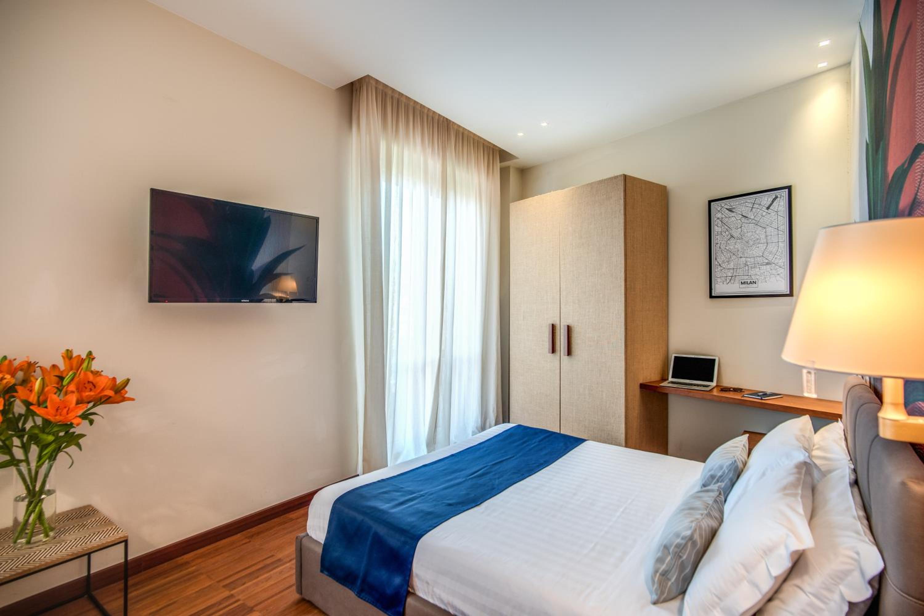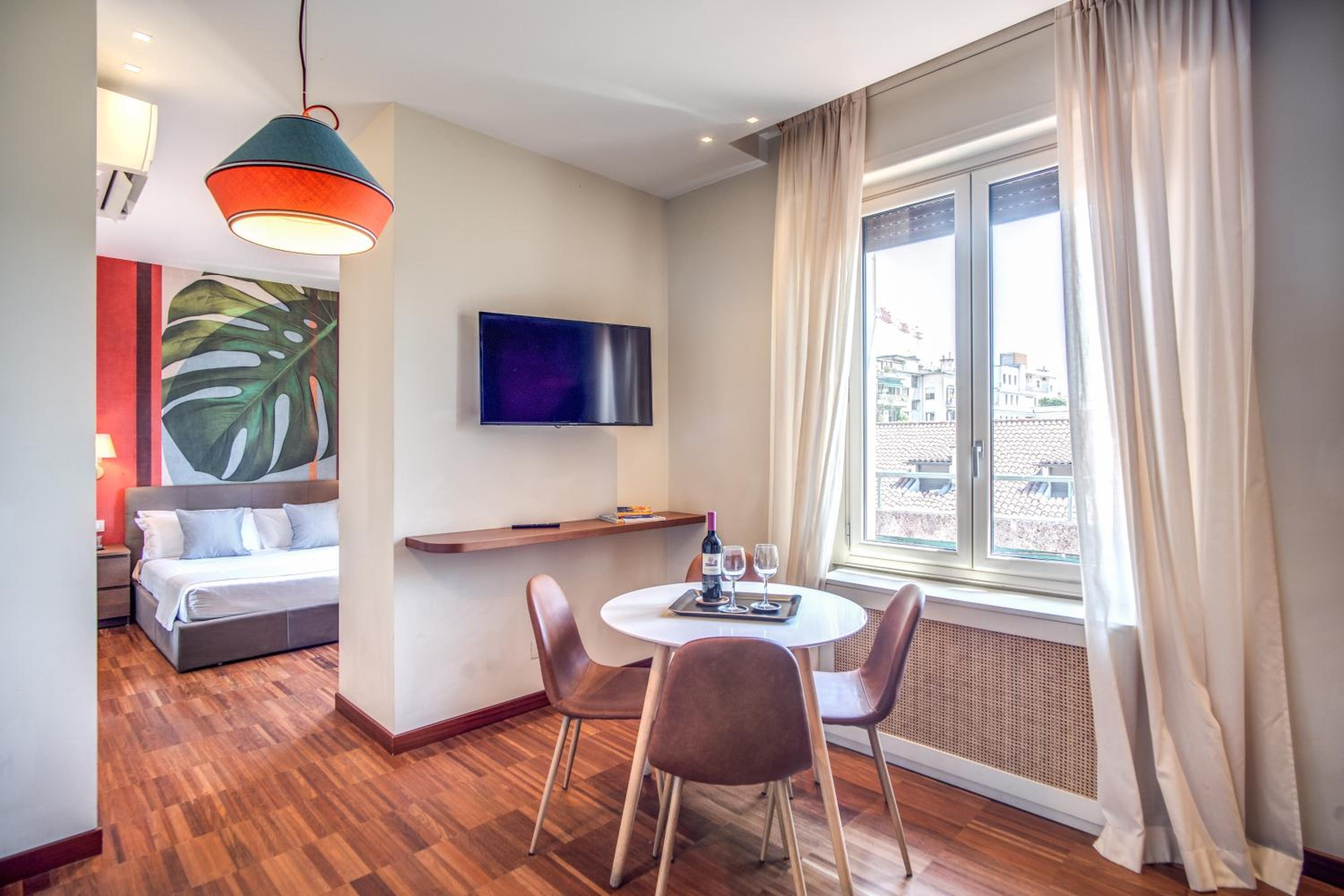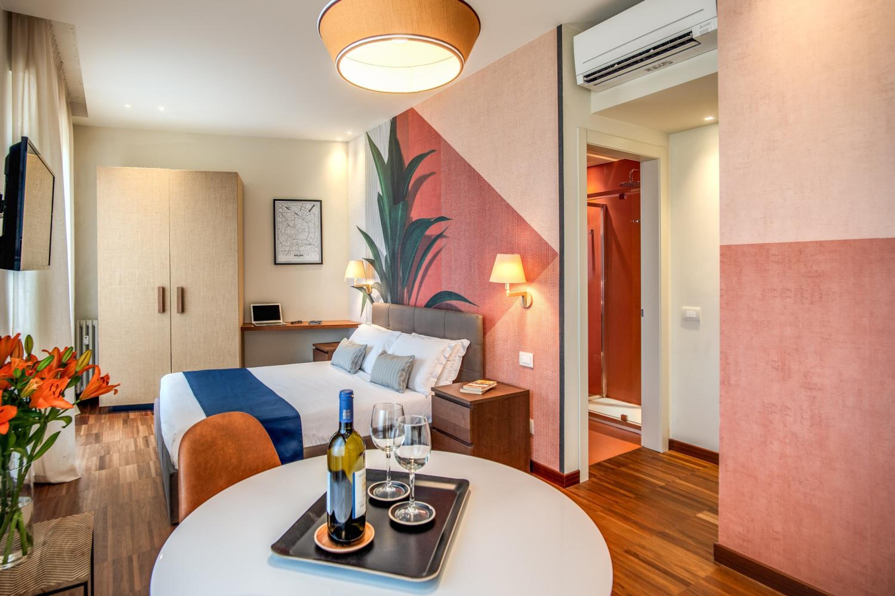 Experience comfort and convenience at Milhouse Suites Duomo, just steps away from Milan's iconic Dome. Each stylish unit is equipped with modern amenities, including a fully equipped kitchenette, flat-screen TV, and free WiFi. Relax in the cozy seating area or unwind in the private bathroom with a bidet and hairdryer.