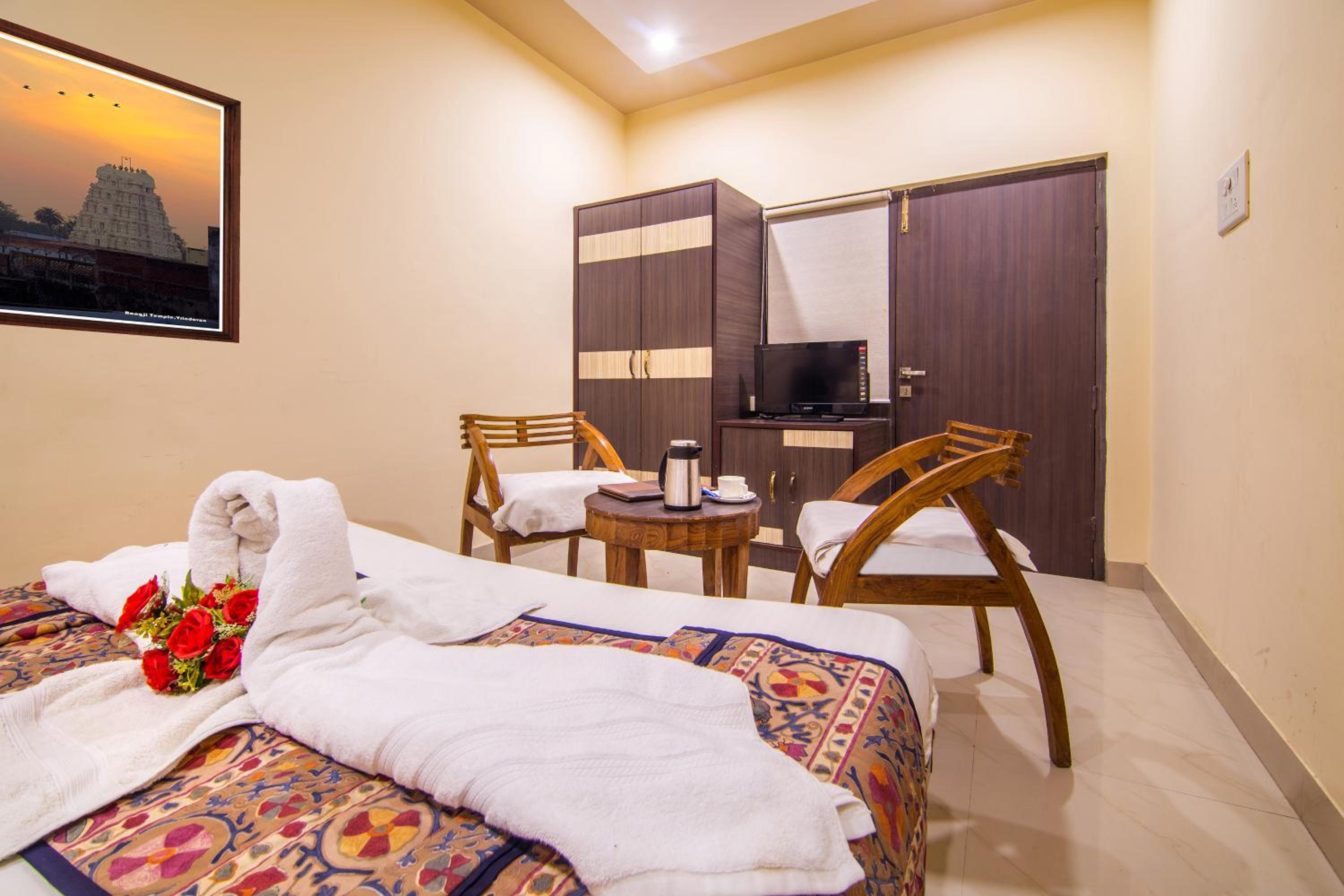 Hotel Ganpati Palace, just steps away from Shri Krishna Janmasthan, offers a business center, meeting space, and a children's playground.