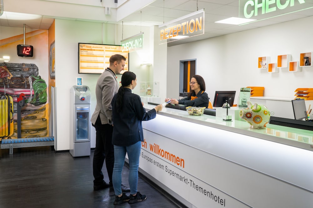 Clean new modern hotel but for the FOOD hotel restaurant and bar did not open till 1800 and very expensive. Bonus near the REWE