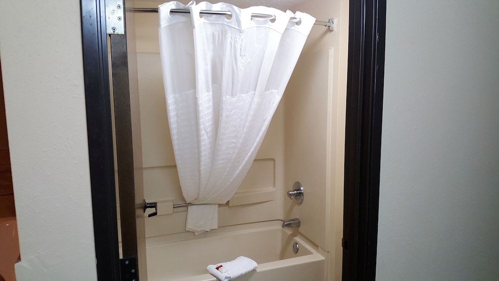 This is by far the worst hotel I have ever stayed at. There was blood or poop splattered on the curtains. Maybe both? Everything was dirty. 4 of the 5 lamps in the room did not work. The bathroom door did not lock.