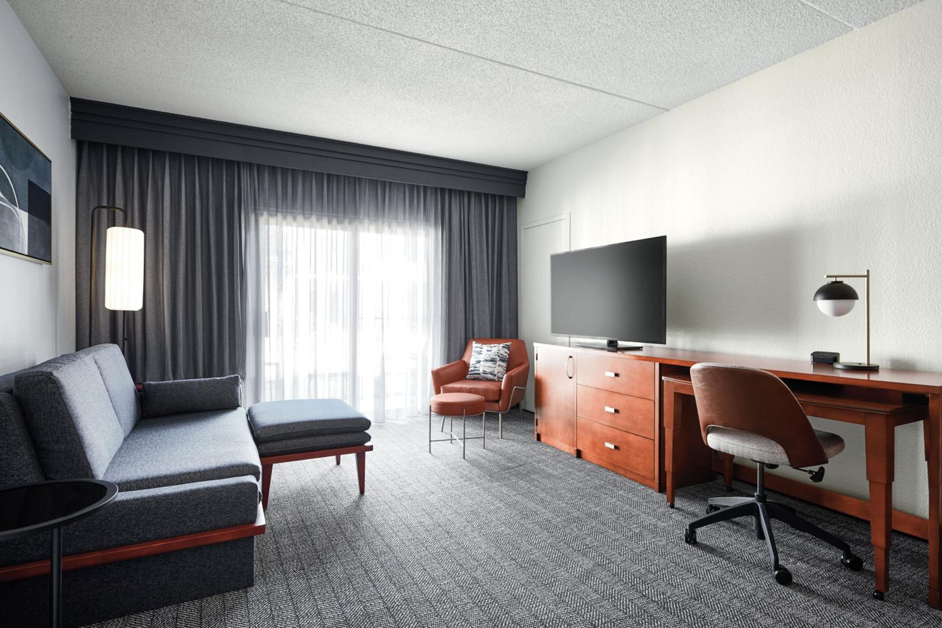 Modern Amenities: Enjoy a stay at Courtyard Westport Plaza with an indoor fitness center and free high-speed internet throughout. The guest rooms feature work desks, flat-screen TVs, and coffee machines for your comfort.