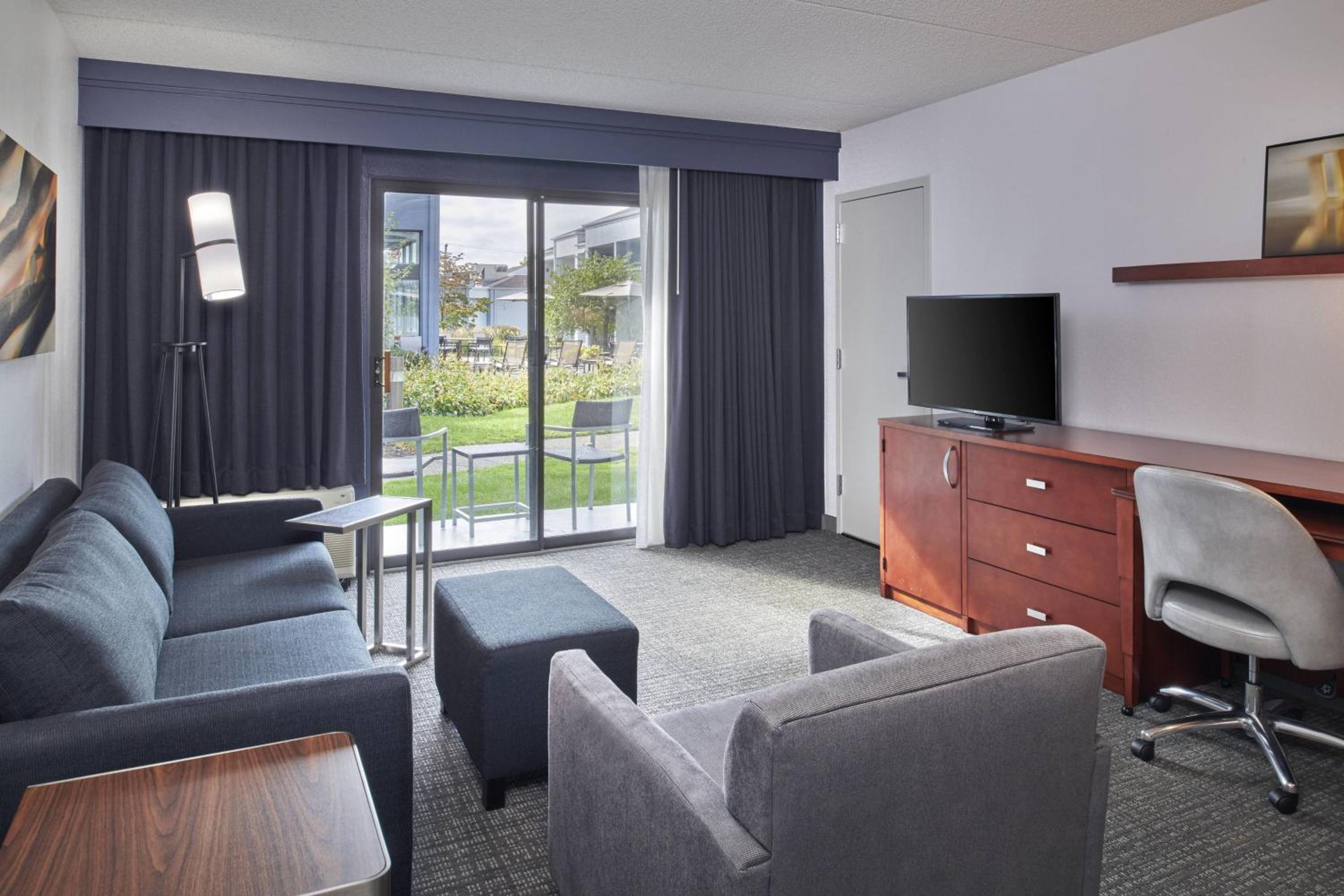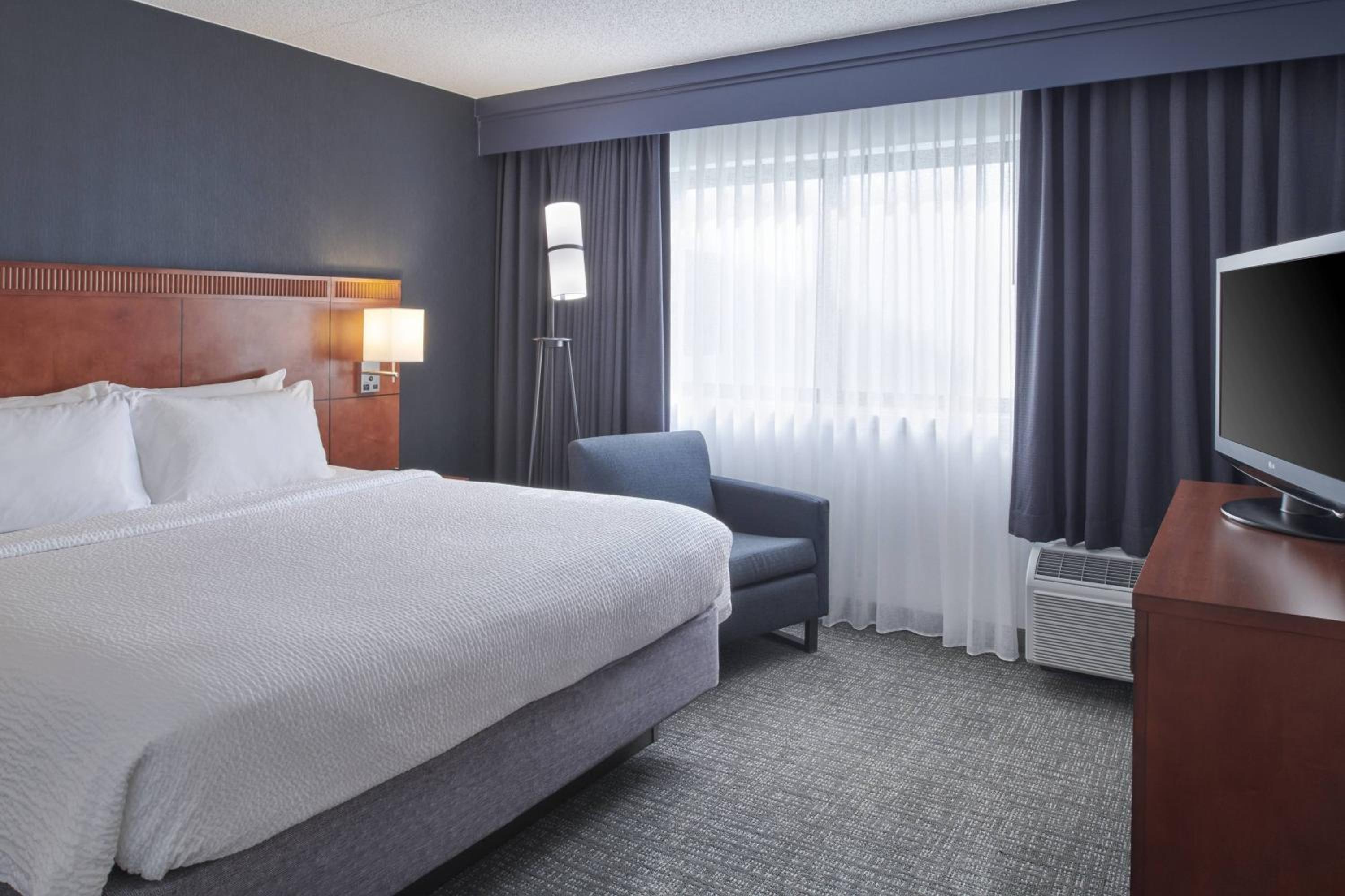 Courtyard Troy offers an upscale experience with an indoor pool, well-equipped fitness center, and complimentary internet access throughout the property. Each room is thoughtfully designed with modern amenities such as a satellite TV, coffee machine, and a spacious work desk.