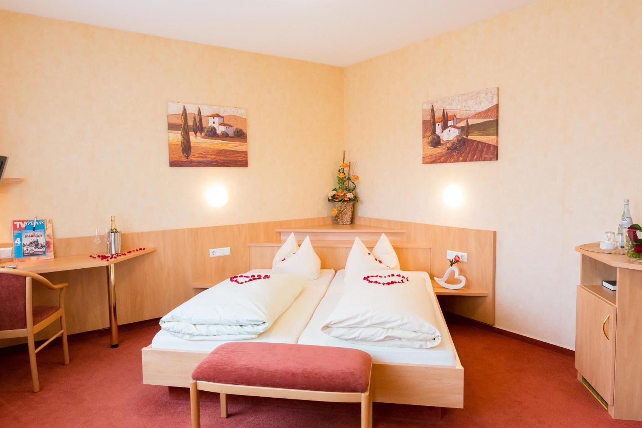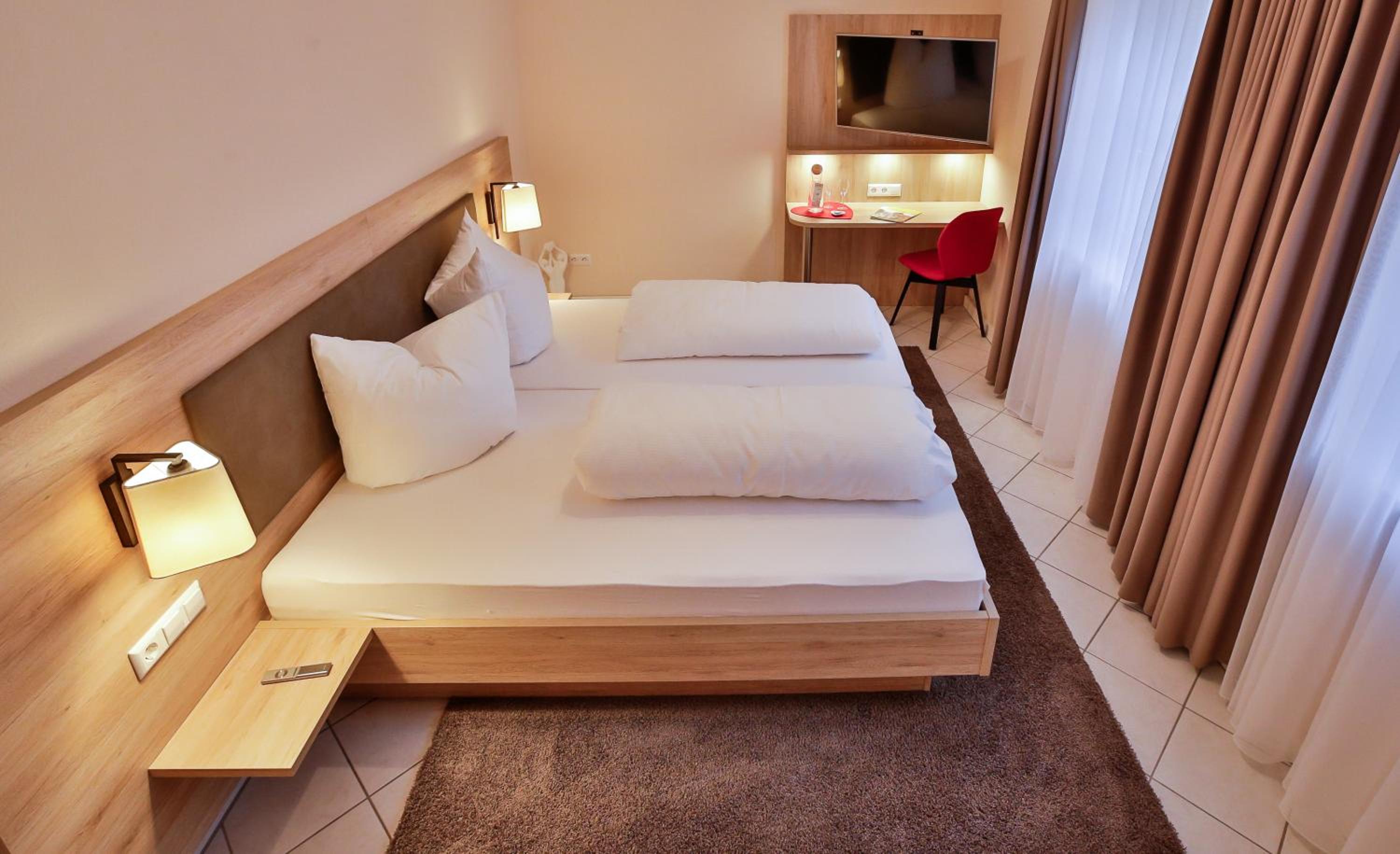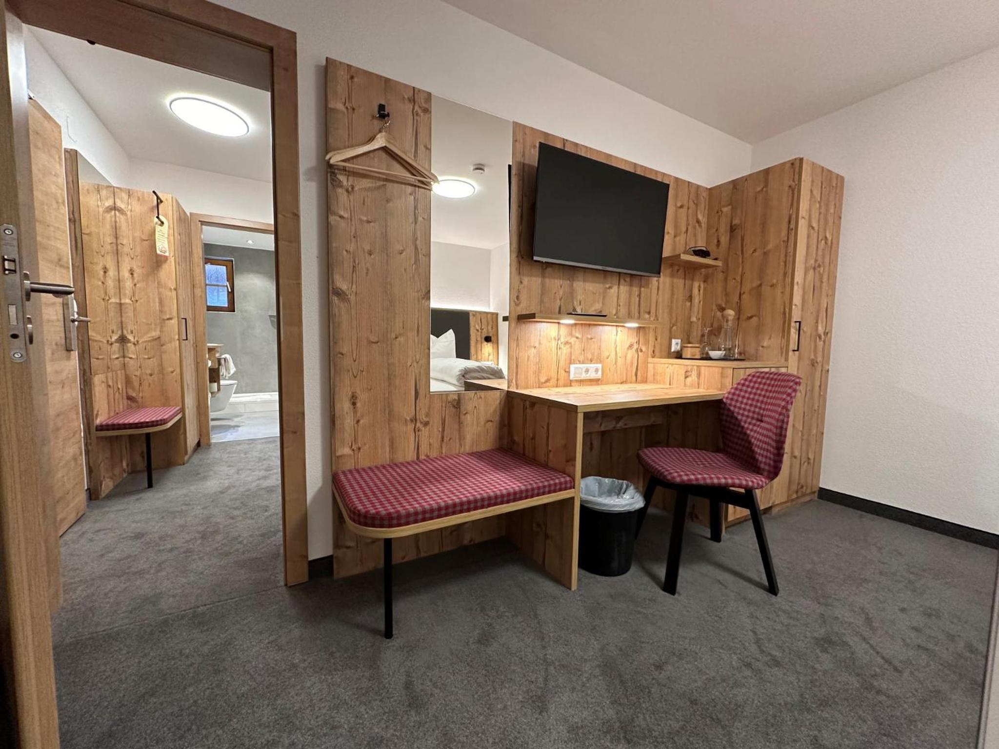 Das Zimmer ist sehr neu. Die Betten richtig bequem. Im Gasthof kann man gleich super lecker essen.