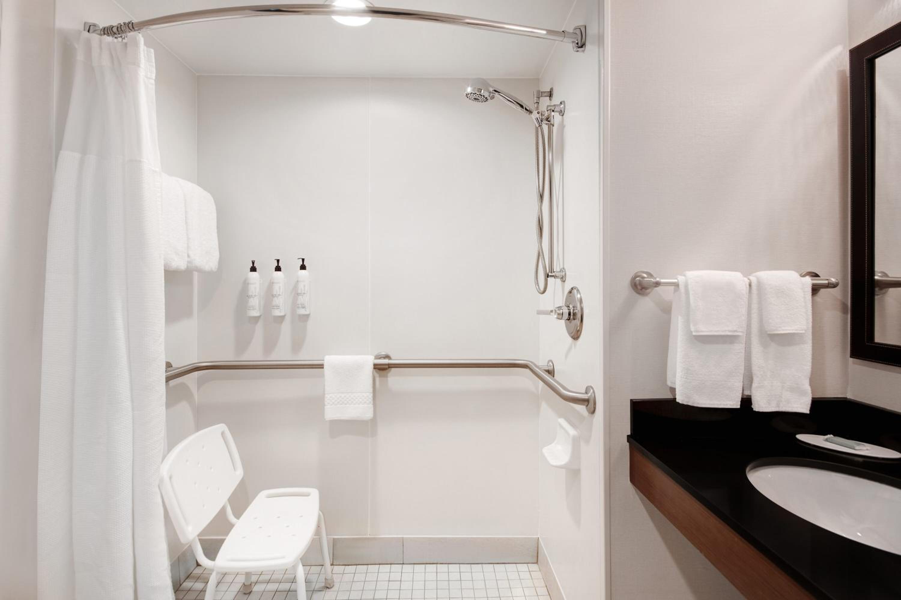 The staff were pleasant and welcoming, breakfast was great, the lobby was good, the room was quiet and easy to get to. The room was large and had plenty of space for our family. The bathroom was very clean.