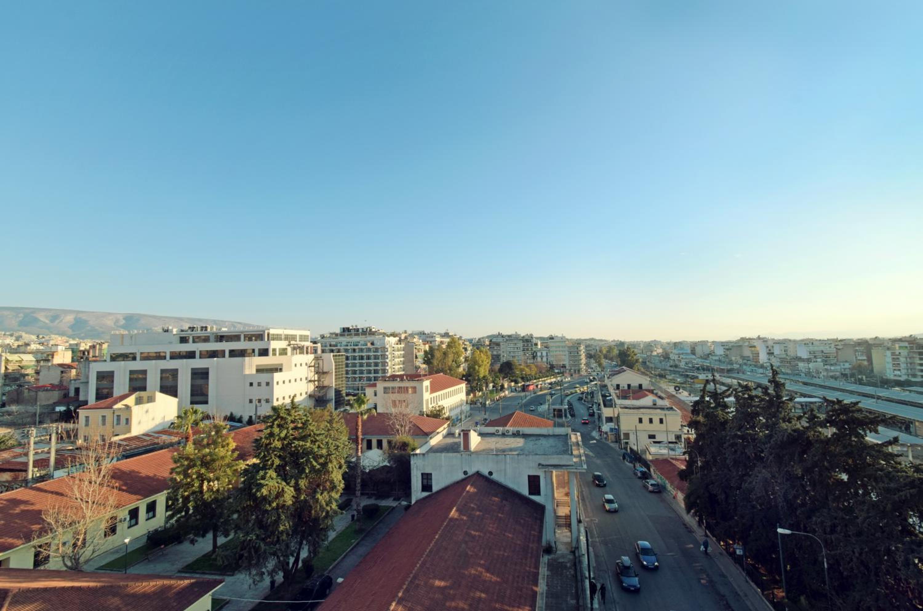 Location-wise, it’s very practical. The metro (red line straight to the Acropolis) is about a five-minute walk away, there’s a bus stop right across the street, and a train station nearby as well.