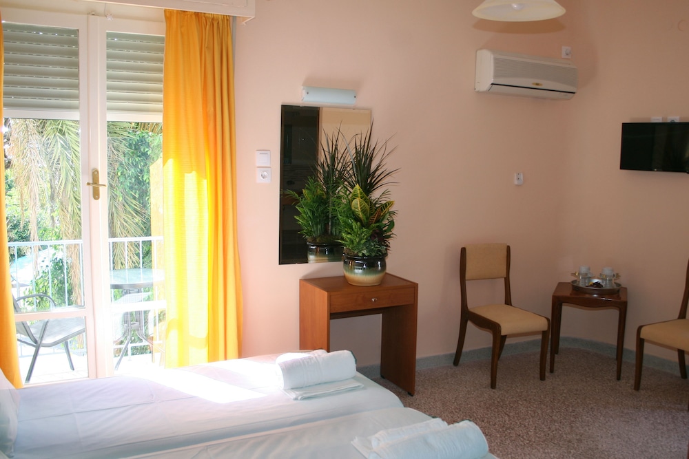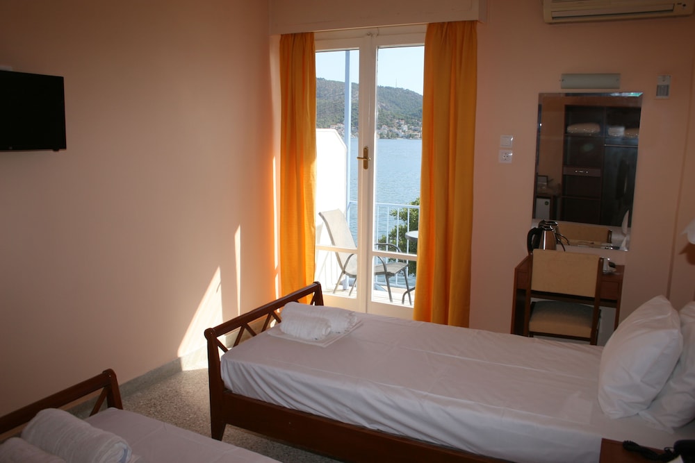 Take in the breathtaking sights from the terrace and garden at Poros Vista Hotel, offering a peaceful retreat for your getaway.