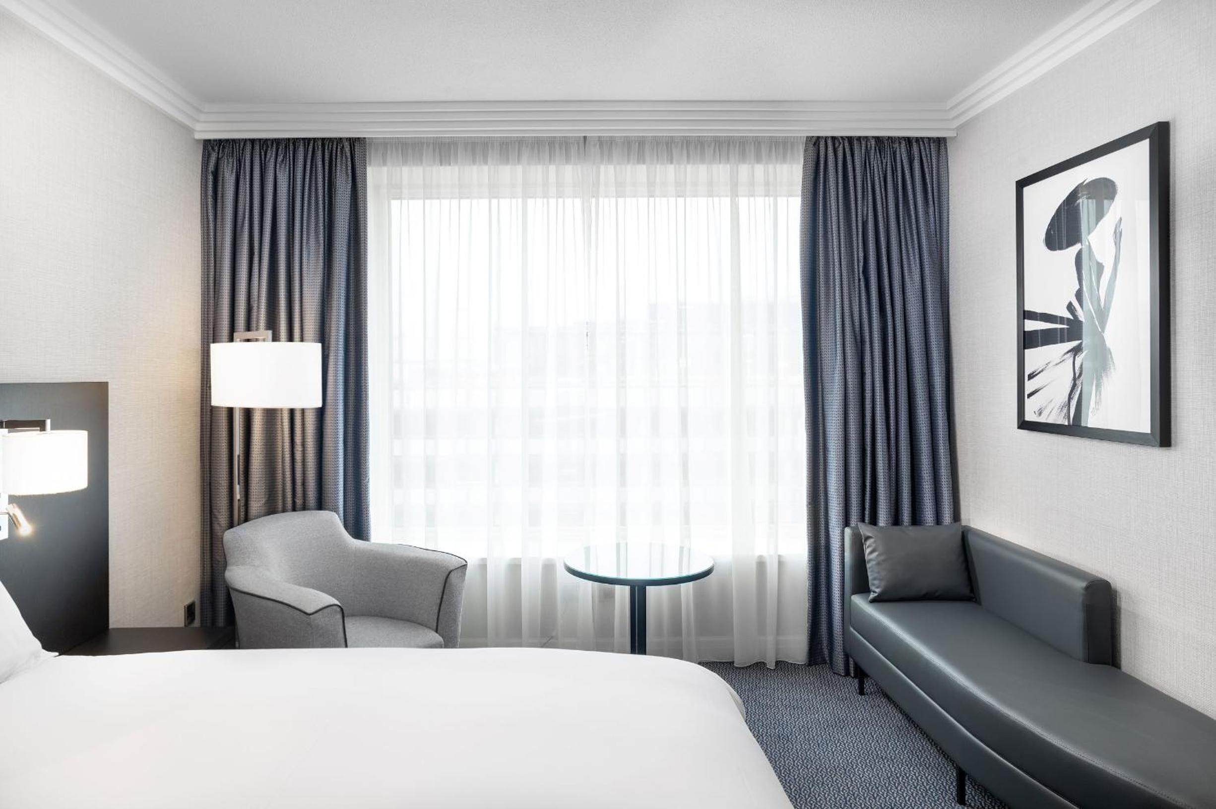 The hotel boasts spacious soundproof rooms with satellite TV, ensuring a peaceful stay amidst the airport bustle. Guests can also take advantage of amenities like 24-hour room service, a business center, concierge desk, and convenient parking options for short or long stays.
