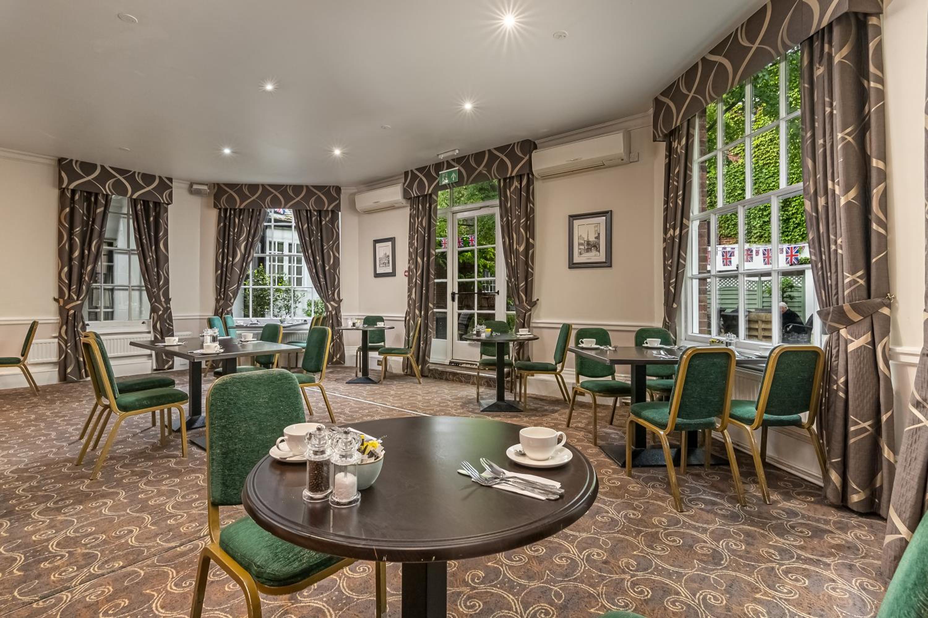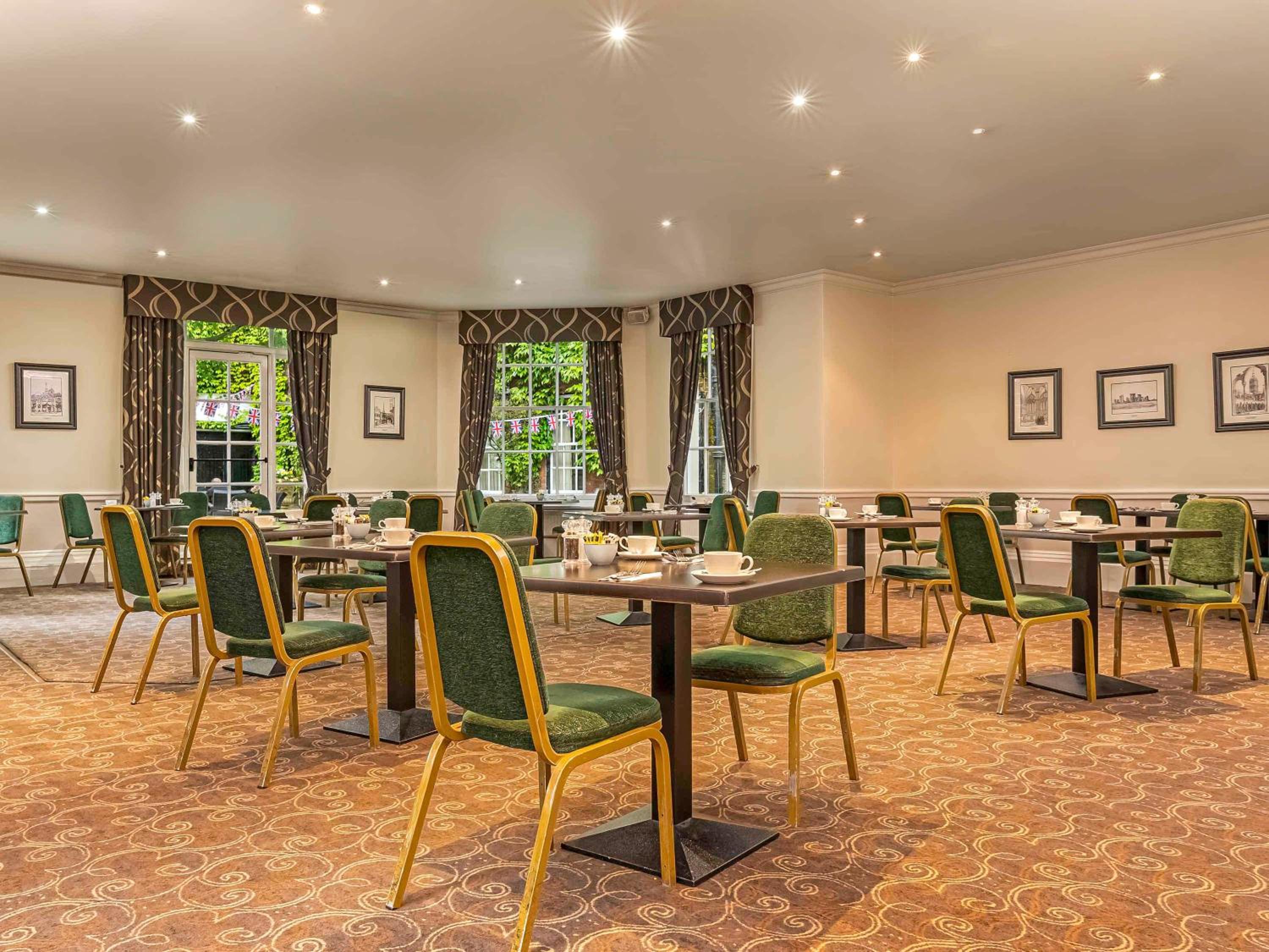 Indulge in British cuisine at the Squires Restaurant, complemented by a relaxing lounge offering a variety of snacks, light meals, and cream teas throughout the day. Enjoy pre and after-dinner drinks in a sophisticated setting.