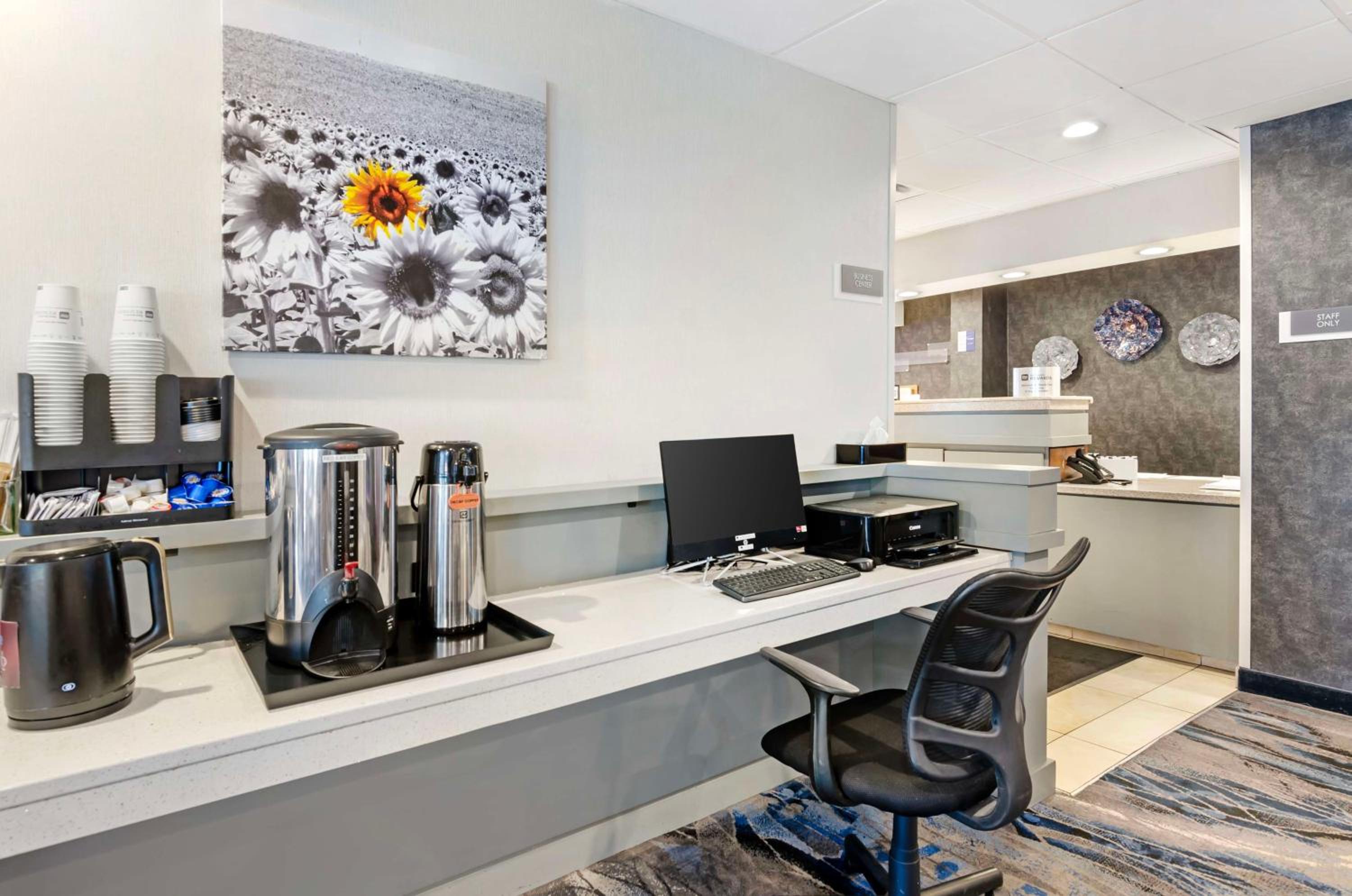 Guests can enjoy the free daily breakfast, fitness center, and guest laundry services during their stay. The well-lit workspaces in each room provide a comfortable area to be productive, while the complimentary on-site parking adds to the overall convenience.