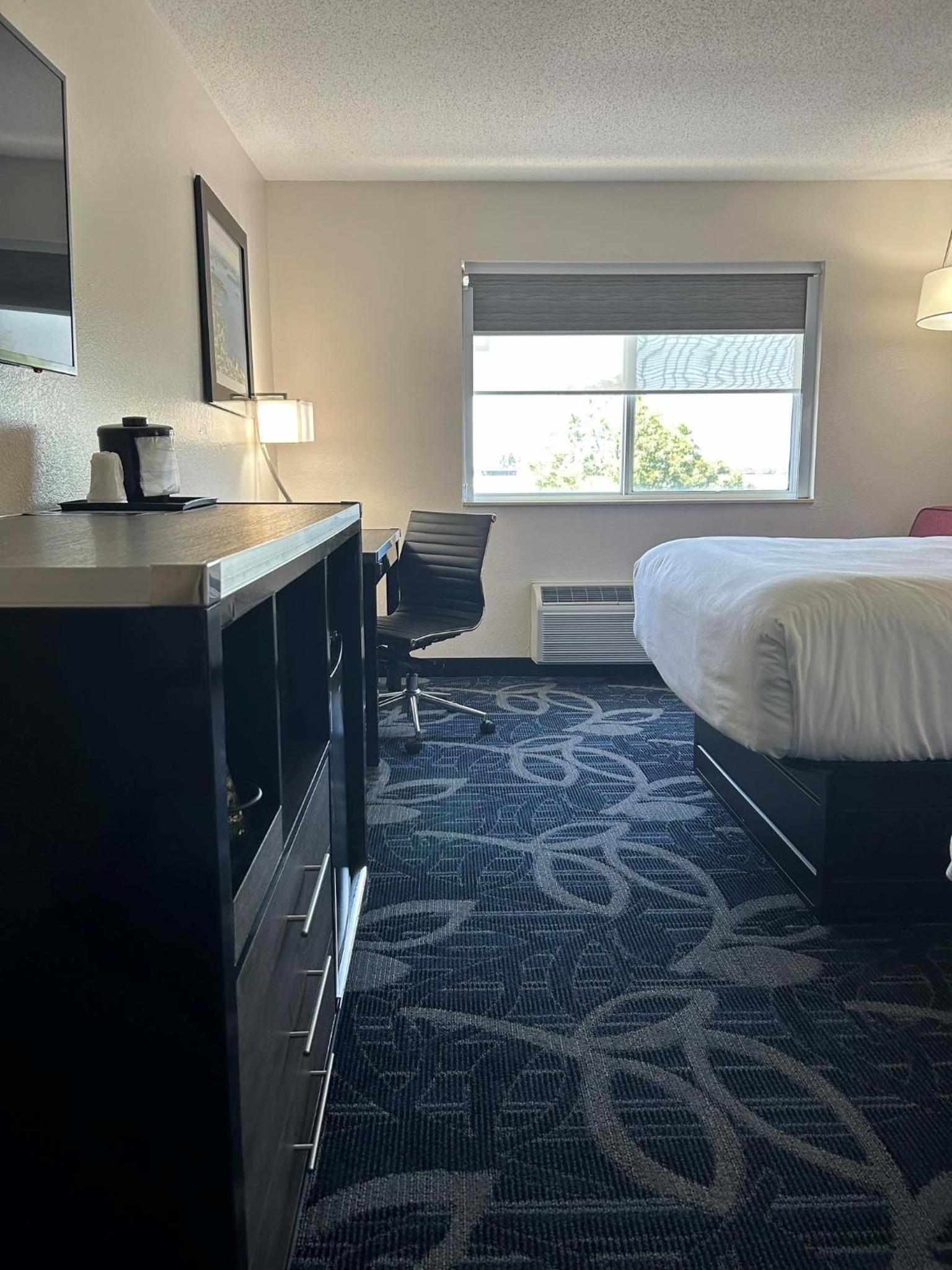 Lighting in lobby, breakfast room and hallways was harsh. LED bulbs come in softer shades. Carpeting was very old and drab. There was no decaf coffee packs in the room for the coffee maker.