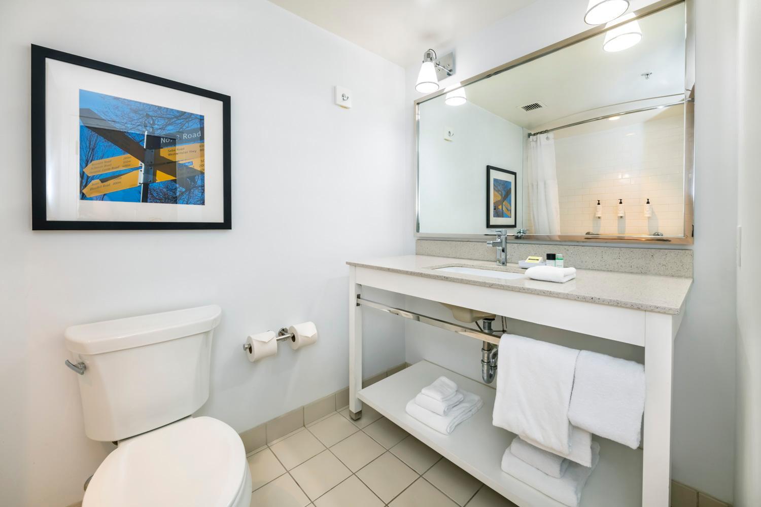 Each of our air-conditioned rooms at Four Points by Sheraton Vancouver Airport is thoughtfully equipped with a 42-inch flat-screen TV, mini fridge, coffee maker, in-room laptop safe, and a spacious work desk with plenty of power outlets and USB charging ports.
