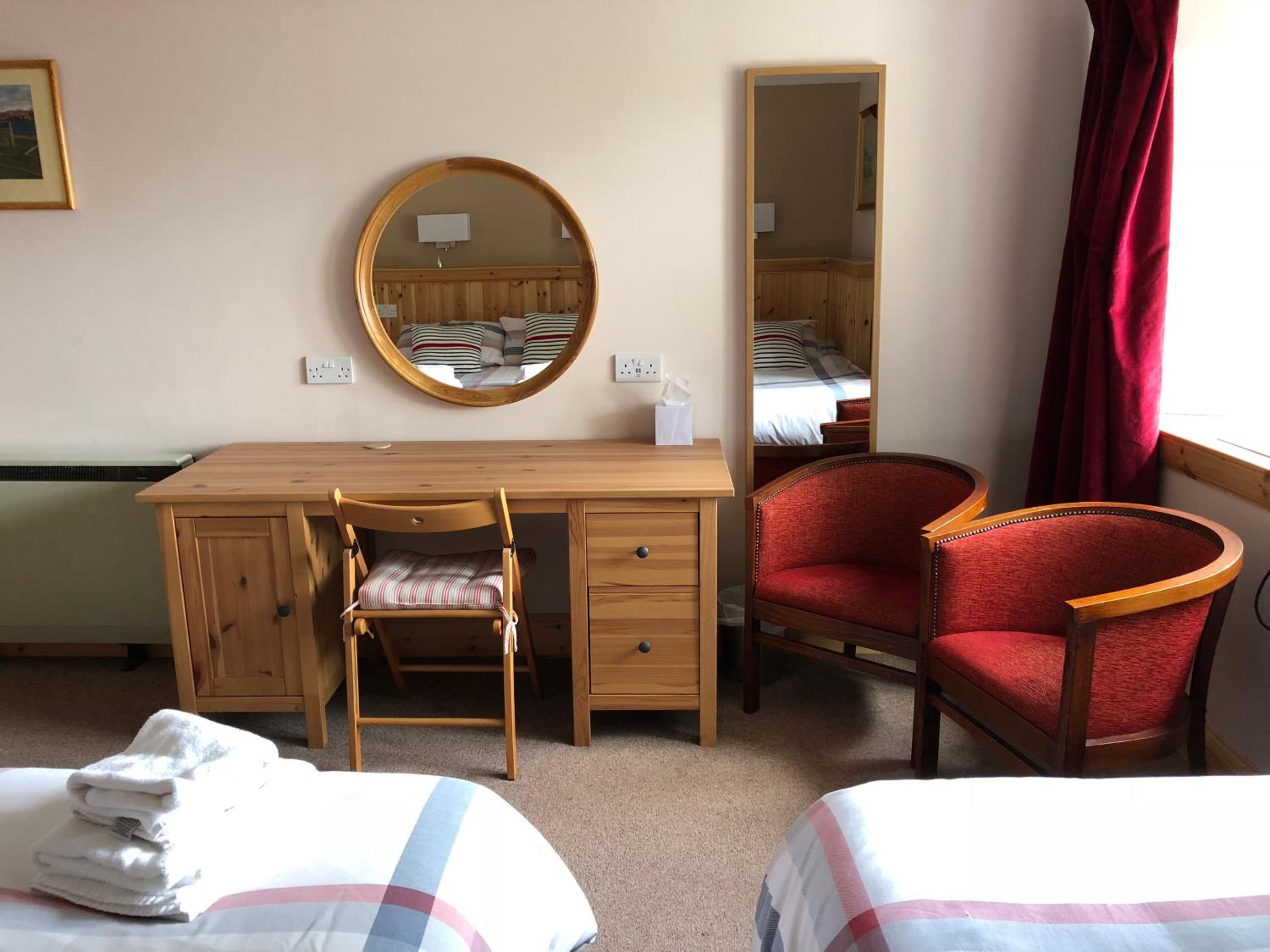 Breakfast was O.K. Room was a triple with ample space but with obvious signs of neglect. Common areas were traditional with old furniture, some in need of minor repairs.The hotel was in approximation to the embarkation-disembarkation area of the ferries to the mainland and the Isle of Jura.