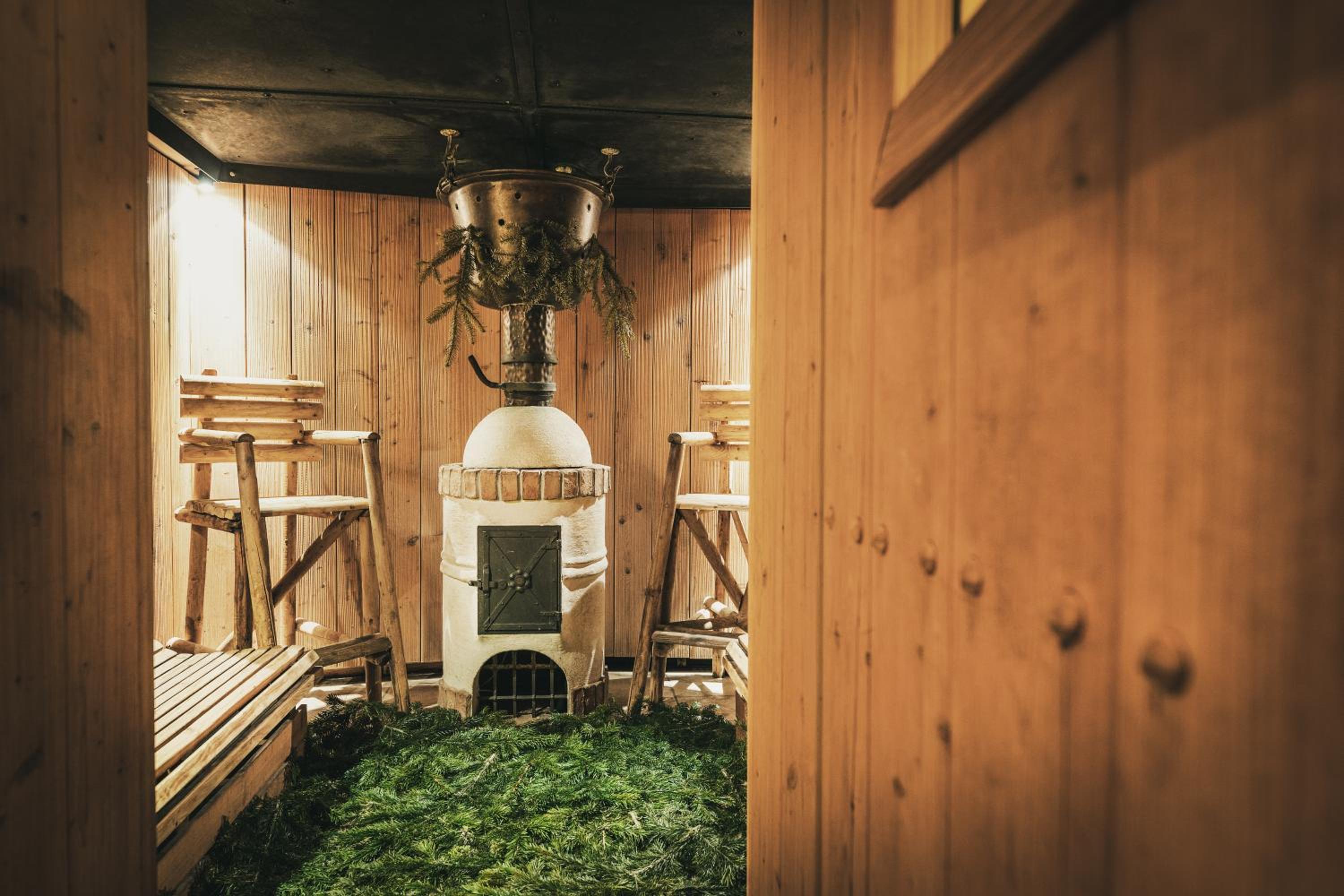 Die Sauna und das Frühstücken