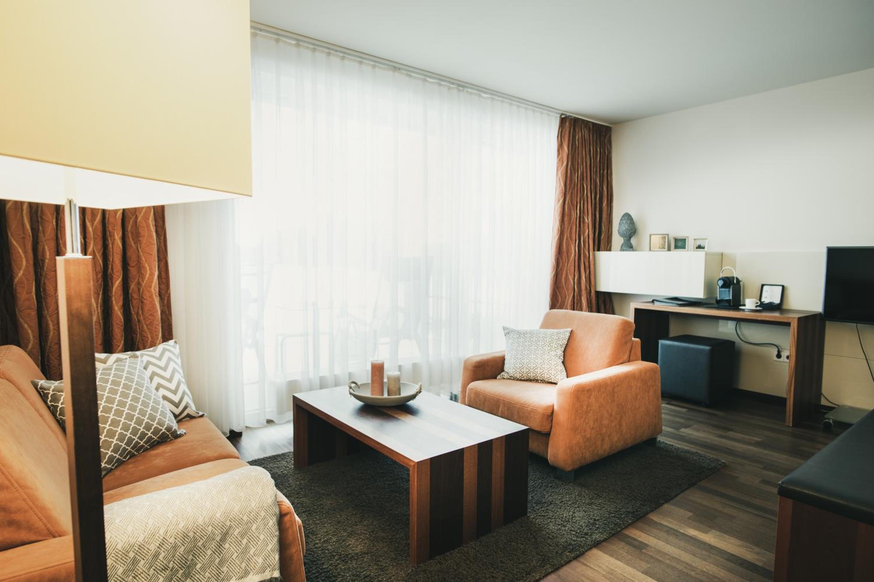 We had one of the apartments and it was so well stocked, spotlessly clean and in excellent condition. We had everything we needed, and more. The pool was lovely and restaurant was brilliant. We stayed over Easter and our 3 and 6 year old were thrilled to find the Easter Bunny had visited and left chocolate on Easter Sunday morning outside our front door! Staff were also friendly and helpful.