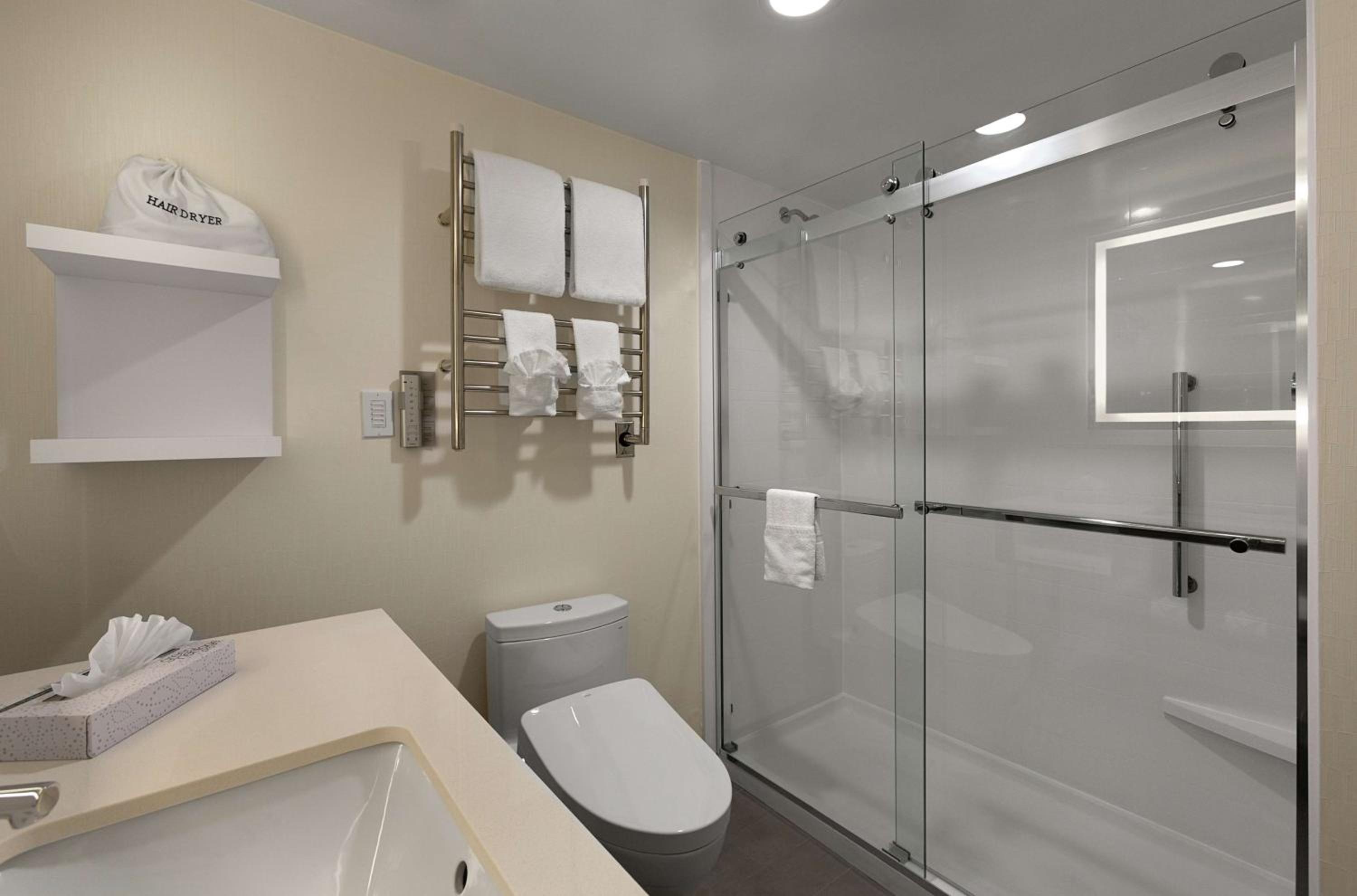 The power outlets in the room near the bed didn't work, so my cpap had to be plugged in across the room and stretched to the bed.The motorized blinds were broke! Thank God for the boozie toilet that had a seat warmer, automatic flip up seats though! That enhanced the value! The shower was extremely narrow, and the curtain was all bound up and looked like a blind maintenance guy installed it!